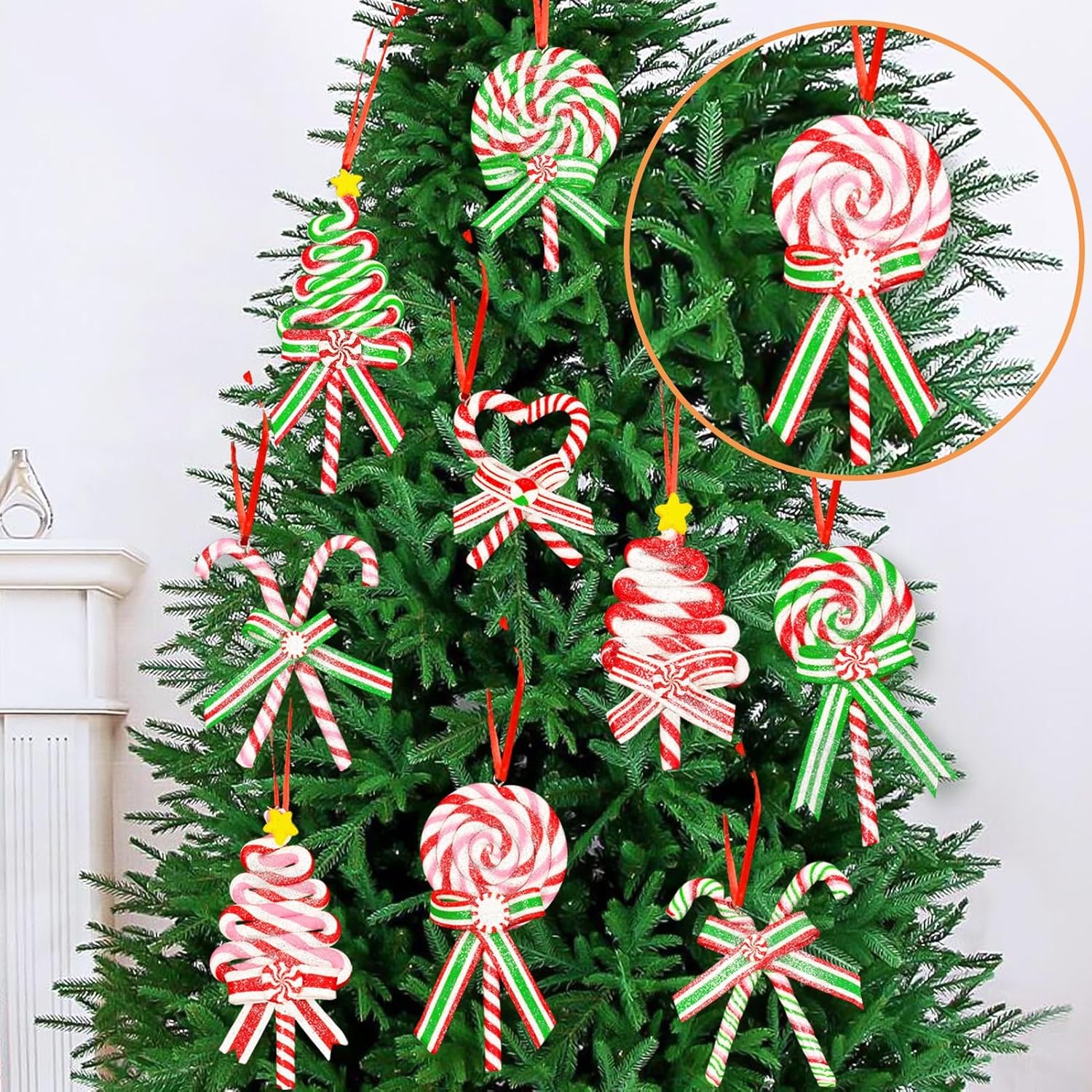 Realistic Designs:Featuring colorful candy shaped designs with great details, these candy cane Christmas tree decorations look like real candy, which will add cute sweetness to your tree and create a lively festive atmosphere for your Christmas. Kids love these candy lollipops, and they can't wait to hang these candy ornaments on the trees by themselves