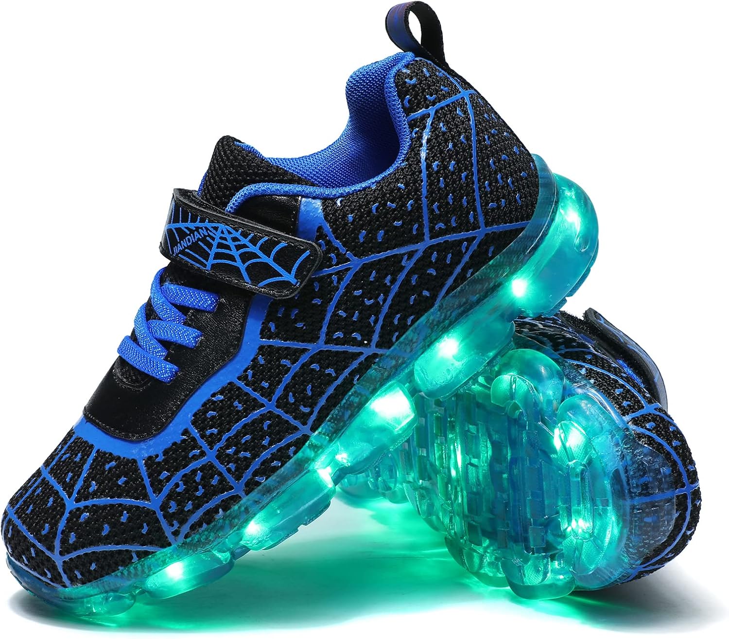 YUNICUS Kids Light Up Shoes Led Flash Sneakers with Spider Upper USB Charge for Boys Girls Toddles Best Gift for Birthday Thanksgiving Christmas Day