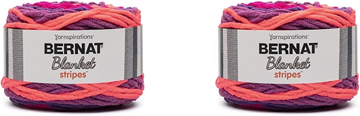 Bernat Blanket Stripes 300g Neon Plum Yarn - 2 Pack of 300g/10.5oz - Polyester - 6 Super Bulky - Knitting/Crochet