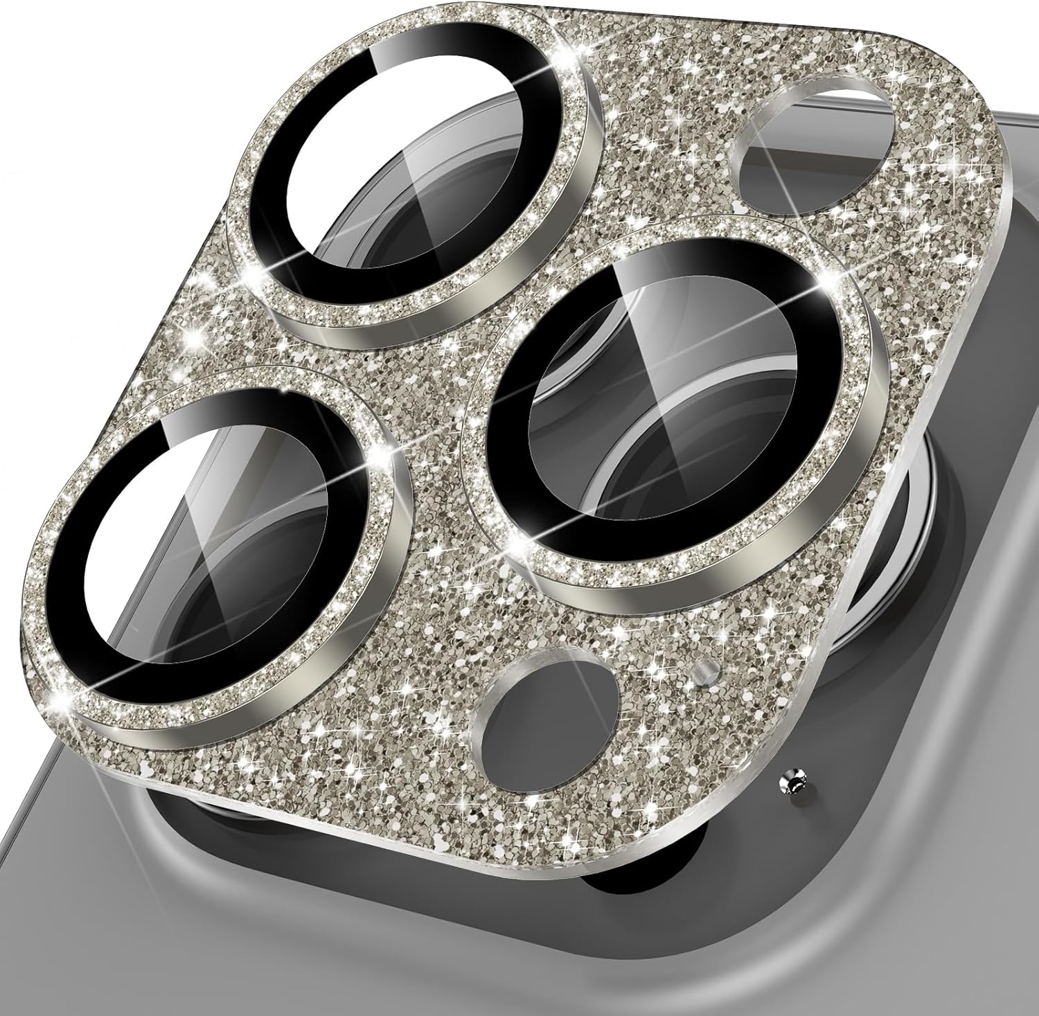 5TH Gen New Glitter Design: Unlike other normal iPhone 15 Pro Max bling camera lens protectors on the market, the top of lens and the full plate are coated with glitter, making it more shining and charming. The glitter is covered with upgrade composite clear layer, so the glitter will not fade with daily use and will not scratch the table, blanket or pet hair, keeping the lens protector as clean as new.