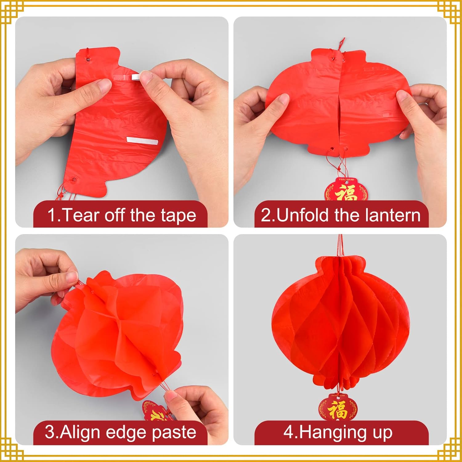 Easy to Assemble and Hang: each cherry flowers Japanese paper lanterns is equipped with a wire frame, which can easily hang paper lanterns with just one step of assembly; each Chinese red lanterns simply open and then glue them together, with a ring and rope on top for easy hanging and removal; the assembly steps are shown in the picture