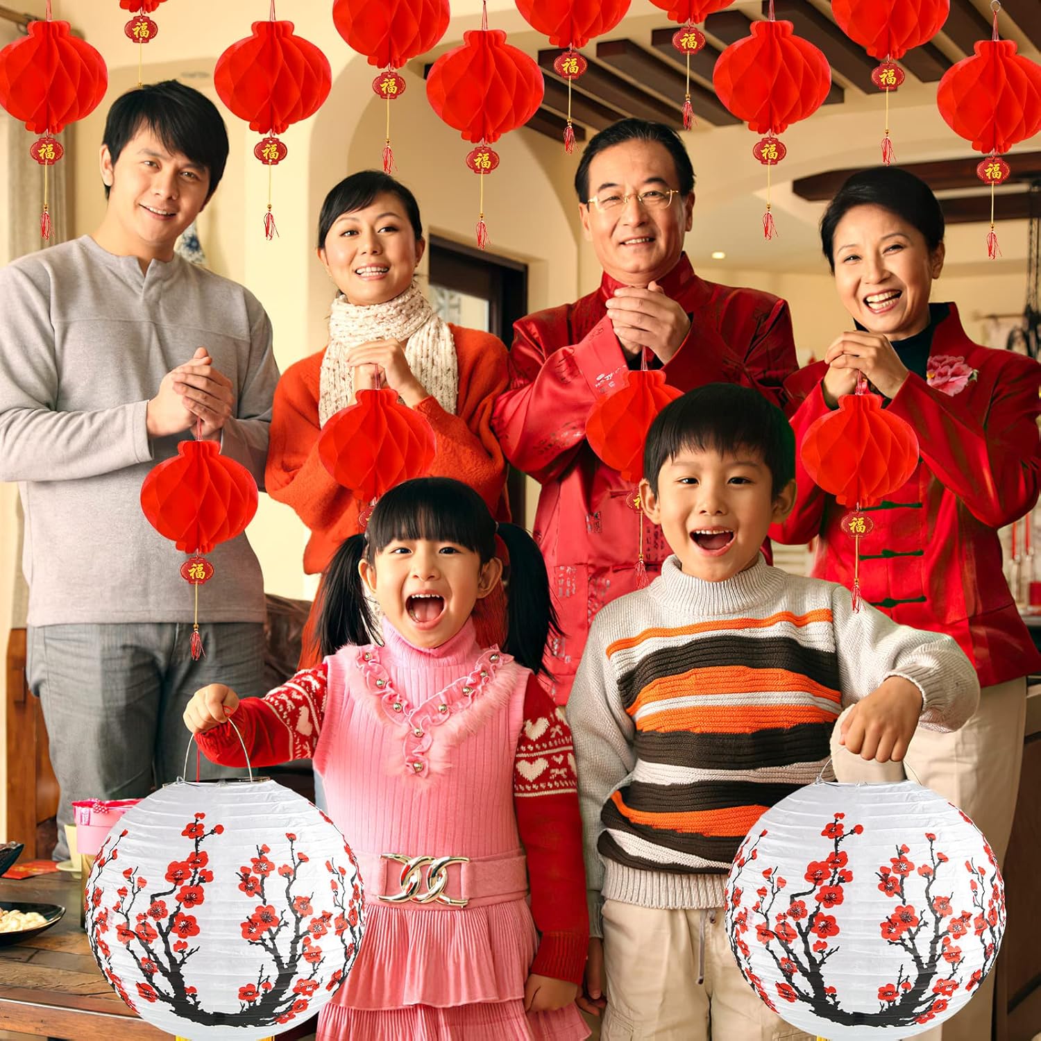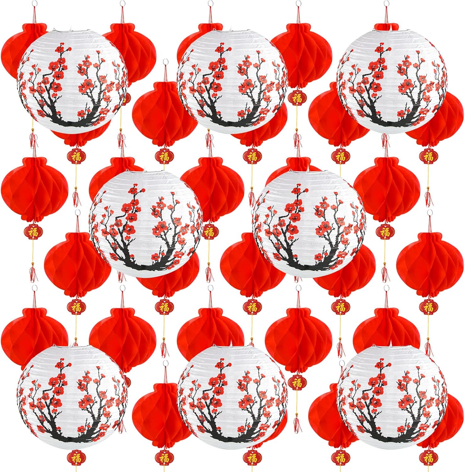 40 PCS Chinese Japanese Paper Lantern Includes 8 PCS Cherry Blossom Japanese Paper Lantern 32 PCS Chinese Red Lanterns 12 Inches Red Cherry Flowers Paper Lanterns for Spring Festival New Year Wedding Applicable occasions: These paper lanterns are suitable for New Year decoration, Asian party, Spring Festival, oriental style party, wedding, baby baptism, carnival or other occasions of decoration, bright colors and exquisite design will attract everyone's attention and bring a happy mood Nice gift choice: You can give these to your family, relatives, close friends, colleagues and neighbors on festival and celebration occasions, to express your care and love,they will be delighted to receive such delicate gifts Durable Material: the red cherry flowers paper lanterns are made of quality tissue paper and metal brackets, which can be applied many times if preserved well; the red Chinese lanterns are made of waterproof plastic paper, not easy to fade or damage, very suitable for indoor and outdoor decoration Specifications: Material: paper, metal, plastic Color: red, white Size: as shown in pictures Package includes: 8 x Japanese cherry blossom paper lanterns 32 x Chinese red paper lanterns