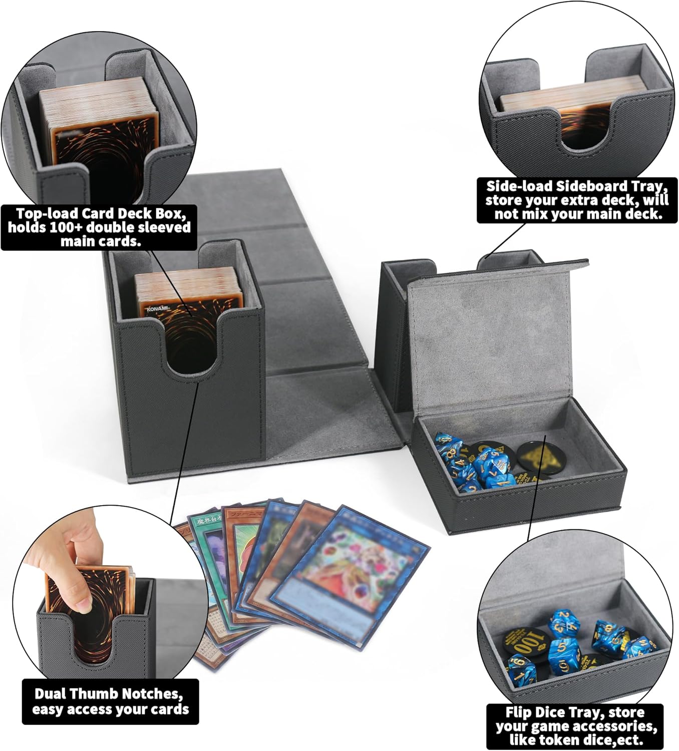 EASY ACCESS YOUR CARDS: The design of Dual Thumb Notches for the Top-load Card Deck Box and Side-load Sideboard Tray will easy access your cards. And the separated trays that won't mix your main deck with extra deck.