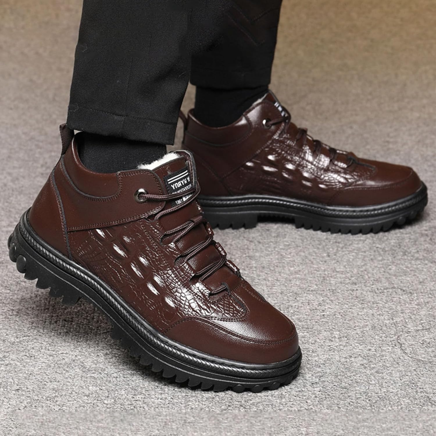 Men Embossed Casual Leather Ankle Boots Our attention to detail sets our products apart. We only use the highest quality materials, expert craftsmanship and durable stitching. This is a durable shoe that you will enjoy for the rest of the season. Gender:men Color:Black / Brown Vamp material:Cowhide Leather Popular elements:Sewing Season: Spring, Fall, Winter Function: Anti-slip, warm, shock absorption Sole:rubber sole Occasion:Outdoor sports Scenario:casual Toe style:Round Toe Closing:Lace-up Package:1 Sneakers Notes: 1. Please measure your foot length and width carefully before ordering, then choose the correct size according to our size chart! 2. There may be slight differences in color due to different lighting displays. (Thank you for your understanding!) 3. When you receive the goods and find any damaged or missing parts, please contact us in time, we will deal with it as soon as possible. We just want you to know that your satisfaction is always our top priority.