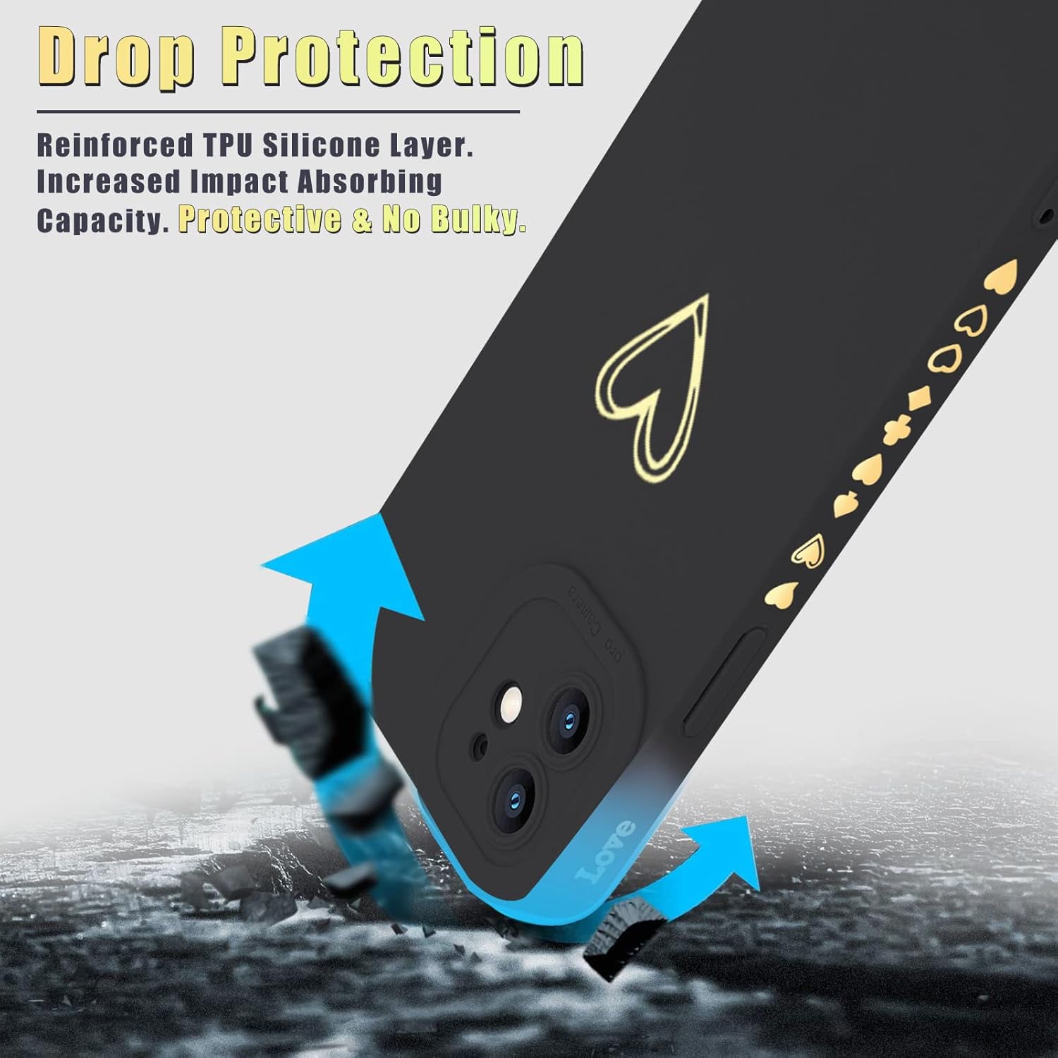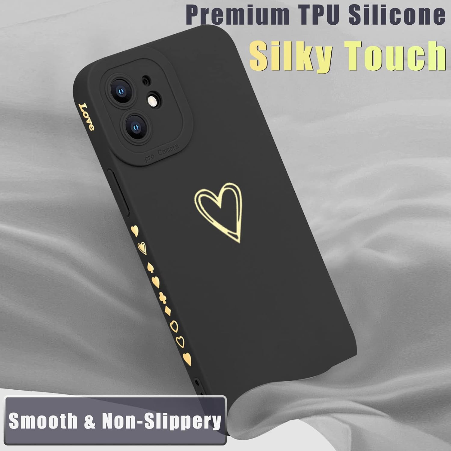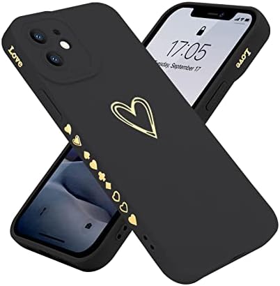 Teageo Compatible with iPhone 12 Case 6.1 inch for Women Girls, Cute Luxury Love Heart [Soft Anti-Scratch Full Camera Lens Protection] Silicone Girly Shockproof Phone Case for iPhone 12-Black