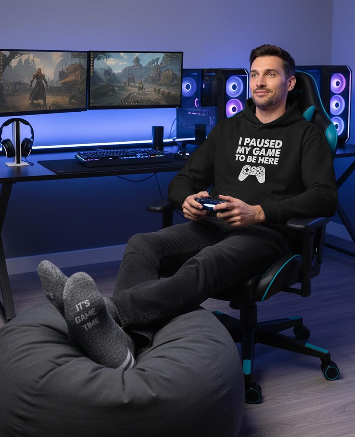 Tstars Funny Gaming Hoodie for Men - I Paused My Game to Be Here Gamer Gifts Teen Boys & Fans of Video Games