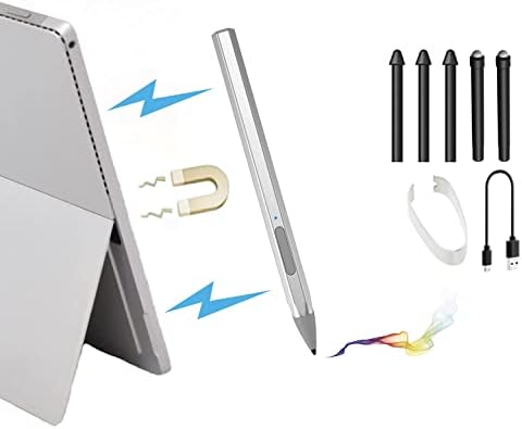 4096 Pressure Stylus Pen for Microsoft Surface Pro 9/8/7/6/5/4/3/X Surface Laptop Book Studio Surface 3/Go3/Go2/Go Pen Protocol, Magnetic Hold, Erase Copy Paste+Tilt&Palm Rejection Function (Silver)