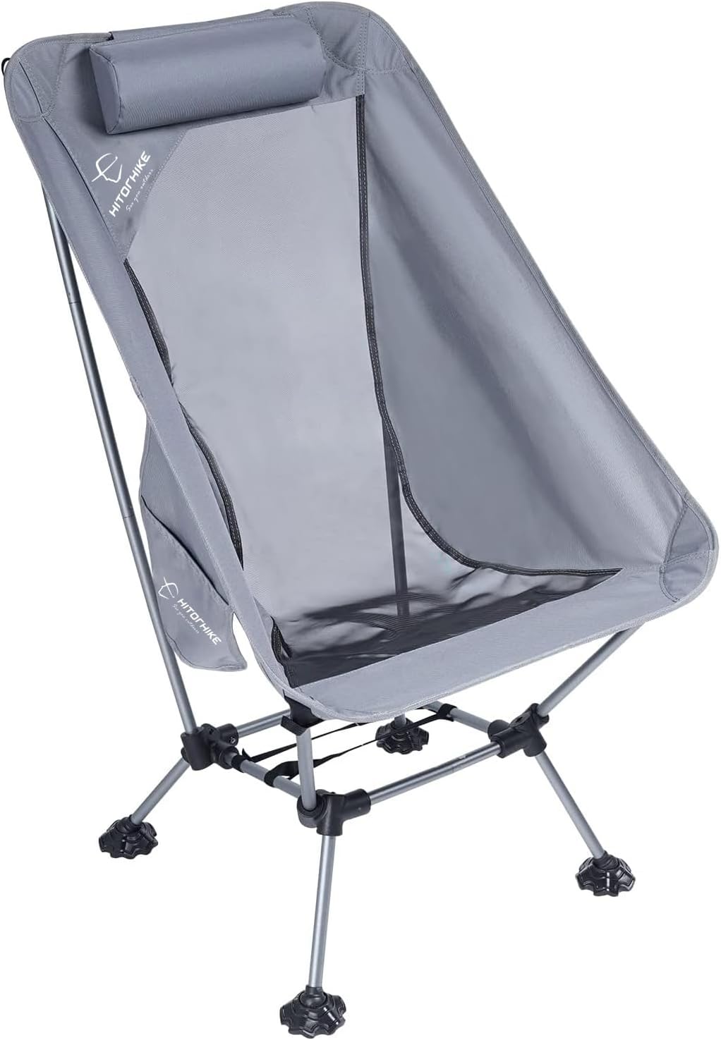 HITORHIKE Camping Chair with Nylon Mesh and Comfortable Headrest Ultralight High Back Folding Portable Compact for Camping, Hiking, Backpacking, Picnic, Festival, Family Road Trip (Grey)