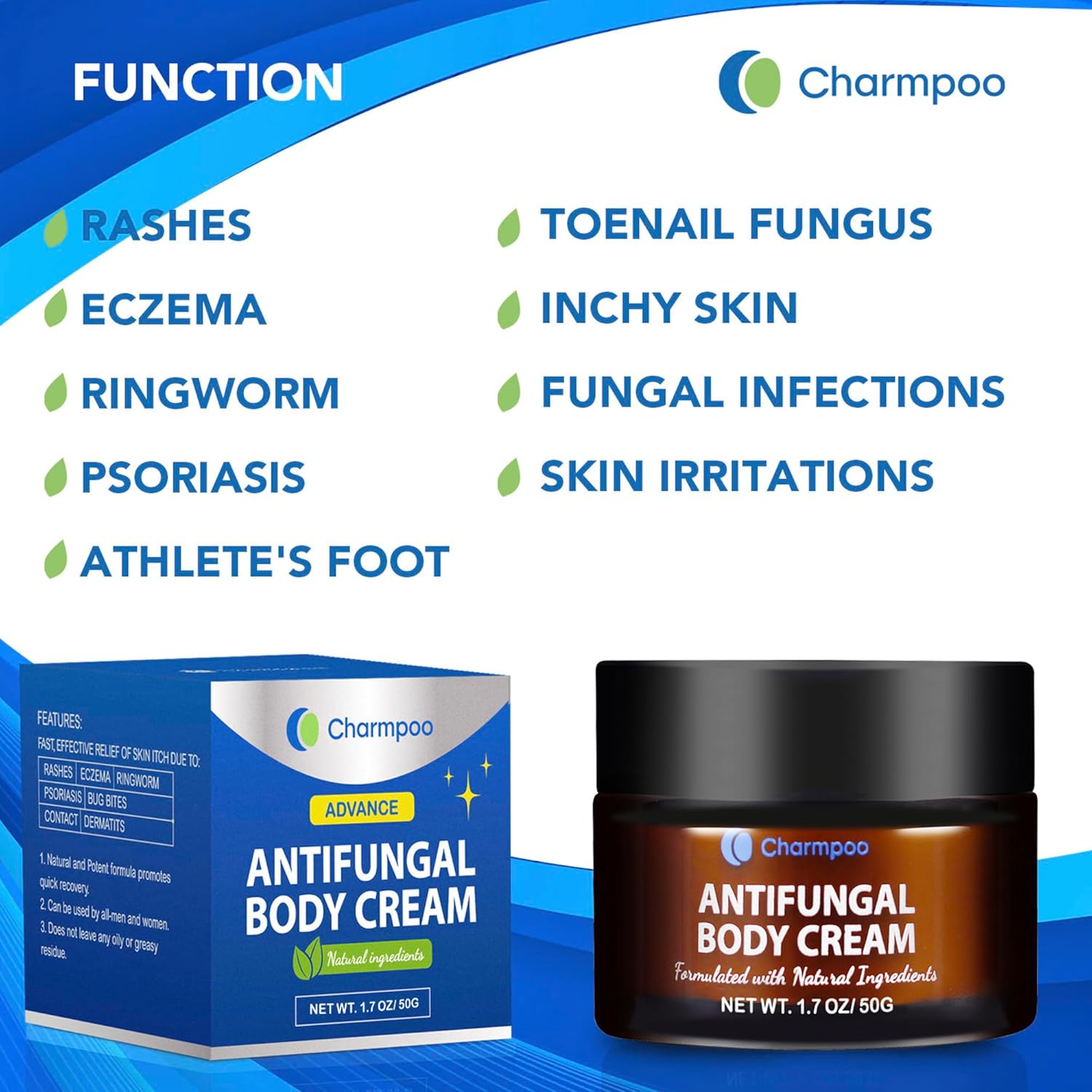 Fight skin infections and eczema with Charmpoo Athletes Foot Treatment: Our Antifungal Cream offers a safe and more natural alternative to defend against skin infections, nail infections, athletes foot, jock itch, eczema, ringworm, tinea versicolor, tinea corporis, tinea cruris, tinea pedis, seborrheic dermatitis and psoriasis.