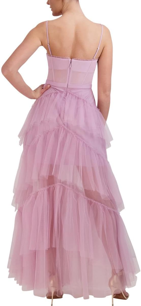 Vestido de noche BCBG Max Azria OLY de tul con volantes escalonados, sin mangas, para mujer