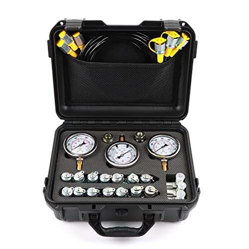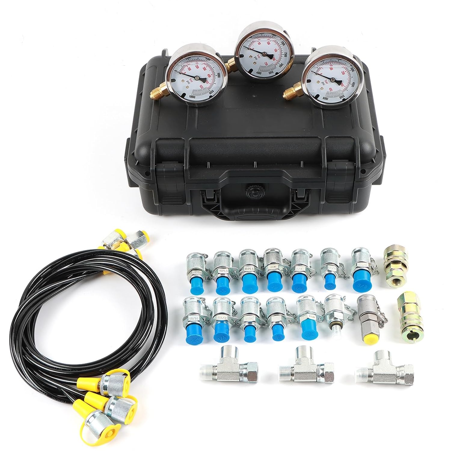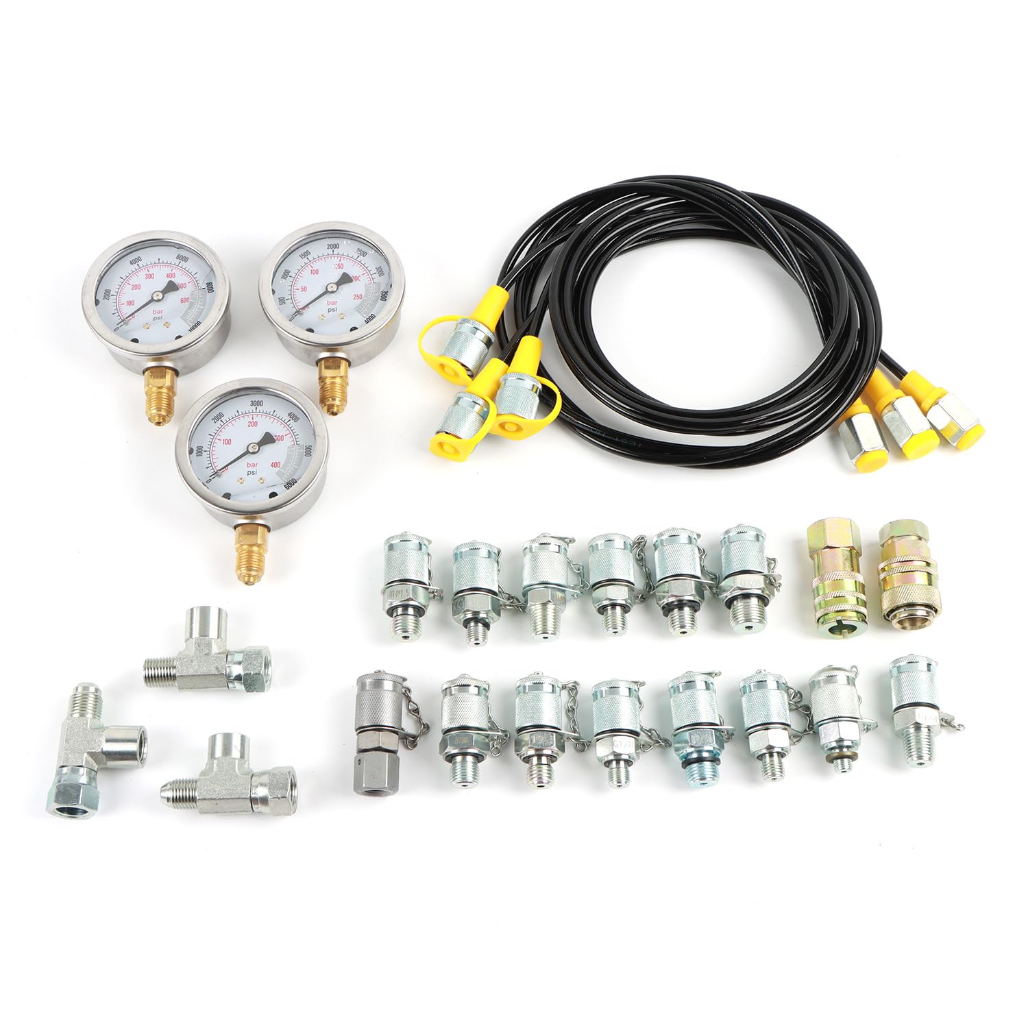Hydraulic Pressure Test Kit 250/400/600bar, 3 Gauges 16 Couplings 3 Tee Connectors 3 Test Hoses Hydraulic Test Kit for Excavator Construction Machinery