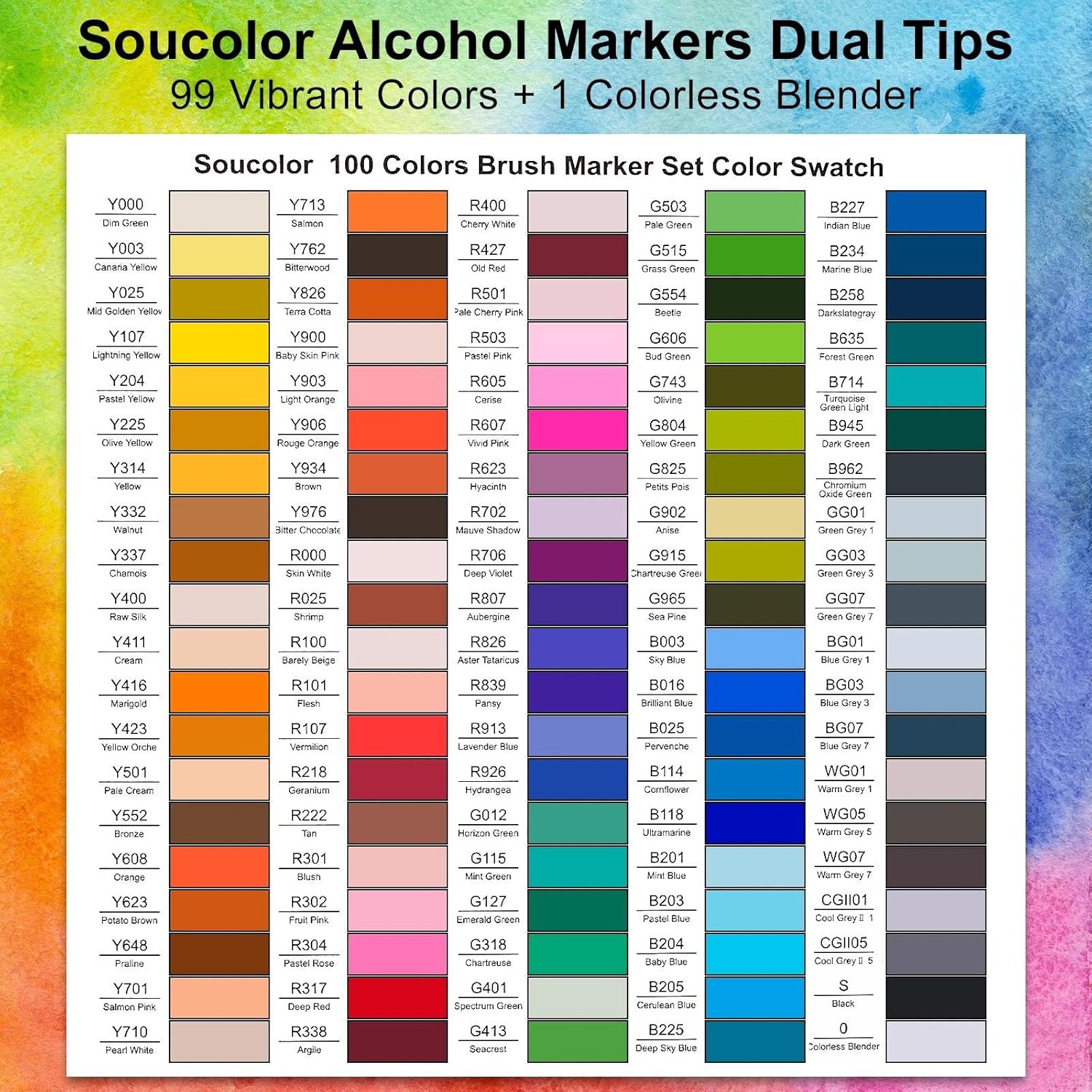 Soucolor Alcohol Markers Set, 100 Colors Dual Tip Brush Art Alcohol Markers, School Office Teacher Supplies for Kids and Adults Coloring Drawing Sketching Book Painting Card Making Illustration
