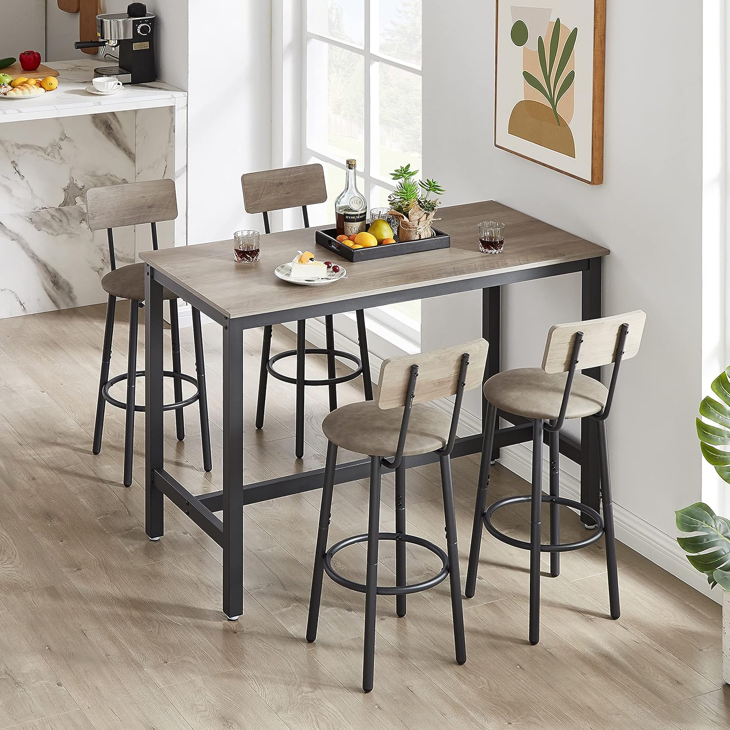 5 Piece Bar Table and Chair Set:This bistro table and chairs set of 4 includes 1 rectangular counter height bar table and 4 bar stools. The rustic gray finish and high-quality black metal frame create a minimalist industrial style that blends perfectly with any home decor.