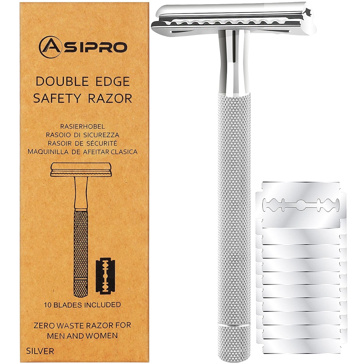 Safety Razor for Men & Women with 10 Double Edge Safety Razor Blades Reusable Double Edge Razor Single Blade Razors for Women & Men Kit Gift Metal Razors Stainless