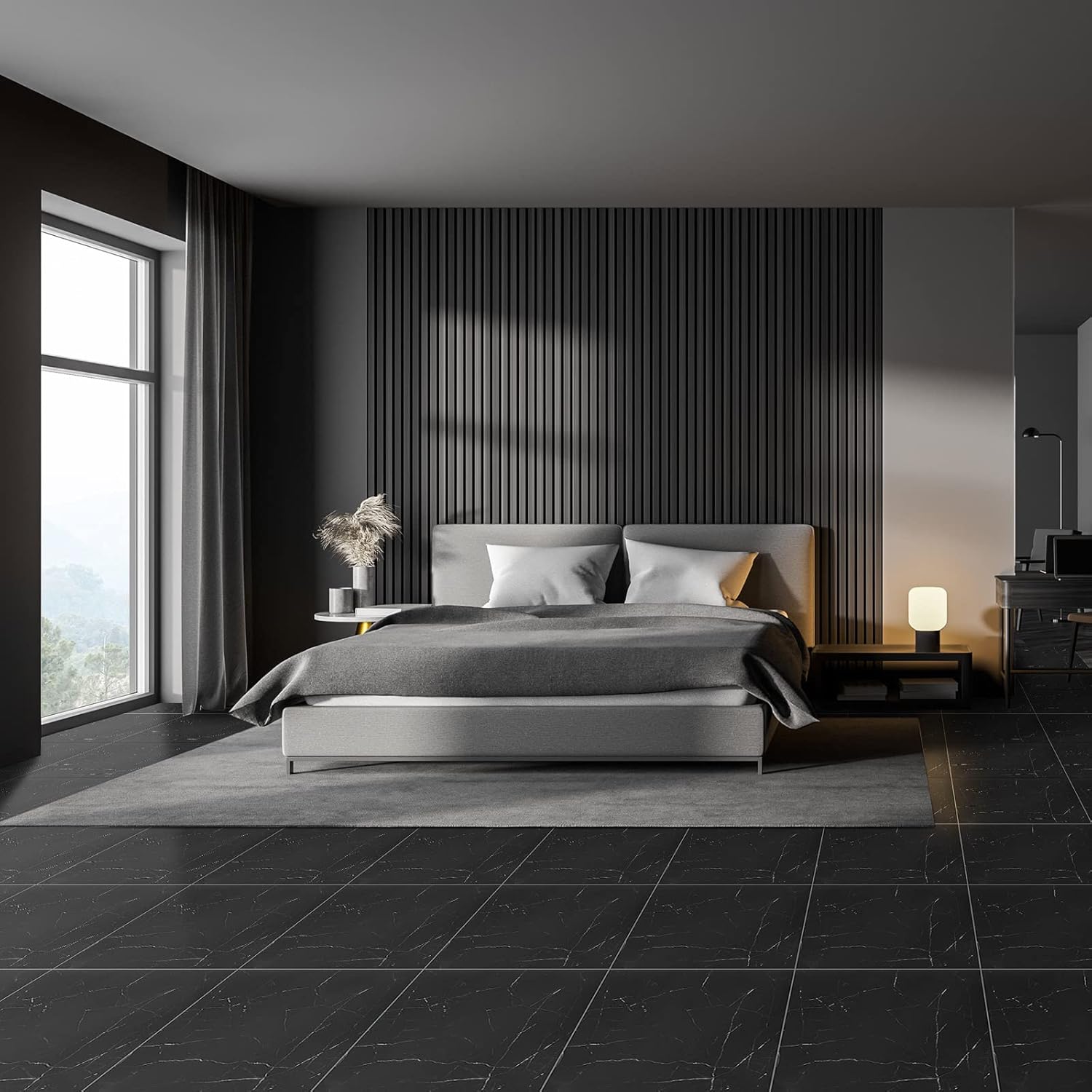 Spiareal 48 Pieces Peel and Stick Floor Tiles Vinyl Flooring 12 x 12 Inch Stick on Floor Tile Self Adhesive Waterproof DIY for Bathroom Kitchen Bedroom Living Room(Black Marble)
