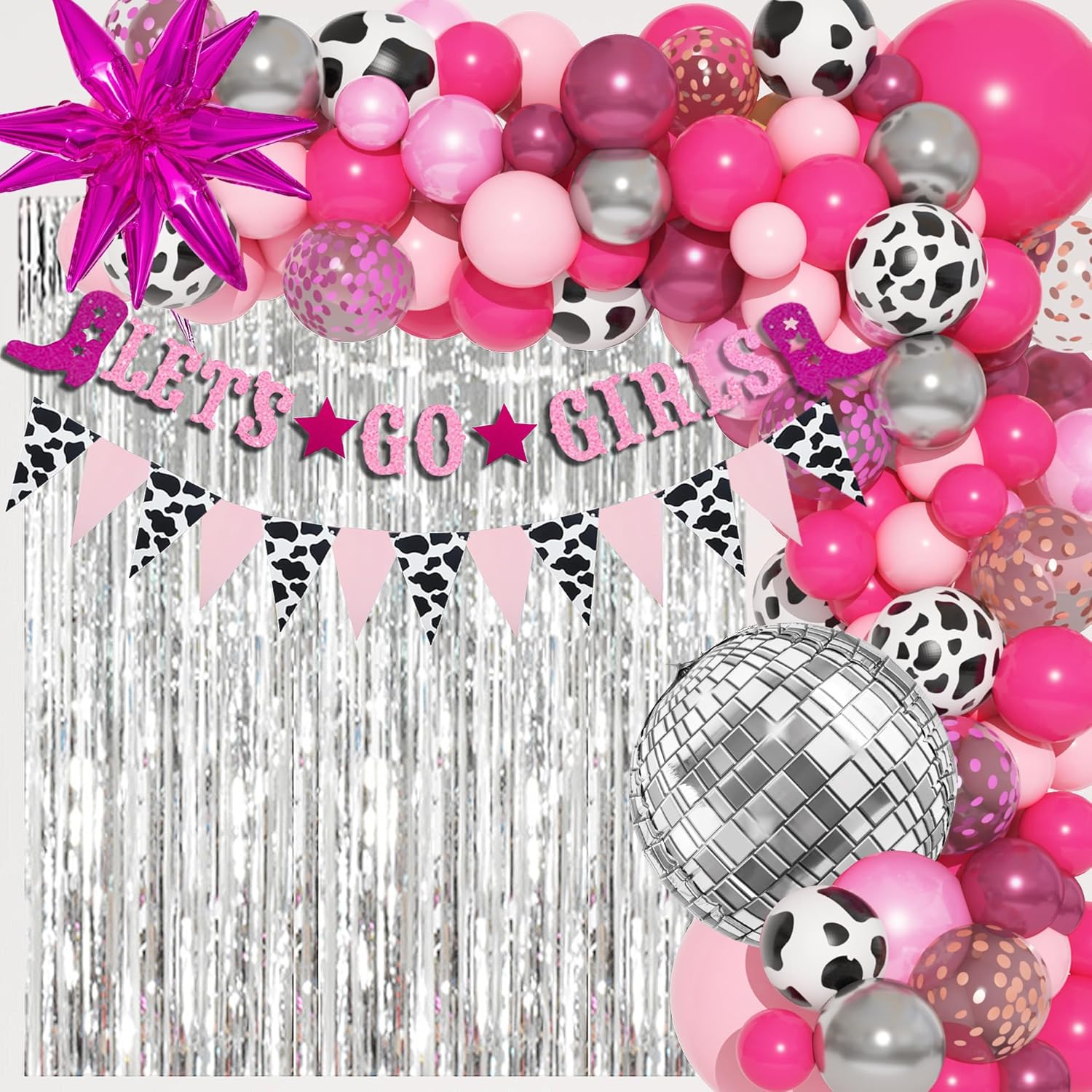 137Pcs Disco Cowgirl Party Decorations, Bachelorette Cowgirl Balloons Hot Pink Balloon Garland Arch Kit Let's Go Girls Banner Western 2000s 90s 80s Birthday Party Supplies