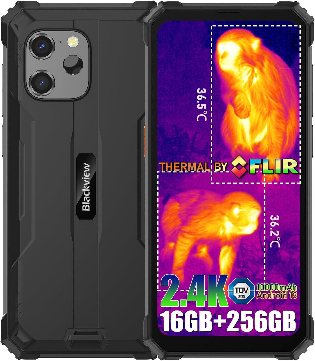 【64 MP OIS Anti-shake Camera & Google Smart Lens】Blackview phone BV8900 is equipped with a 64MP OIS Anti-Shake main camera and a 5MP FLIR thermal imaging camera. With the anti-shake camera, you don't have to worry about blurry photos anymore. The 16MP front camera that supports beauty mode allows you to take more natural-looking photos.The military grade cell phone BV8900 also features 360° panorama mode, underwater mode, night mode, HDR, and professional mode for more surprising photos. Furthermore, the Blackview phone unlocked BV8900 debuts Google Smart Lens for instant tasks via the camera. Easily translate text, homework answer help, identify plants, and more.