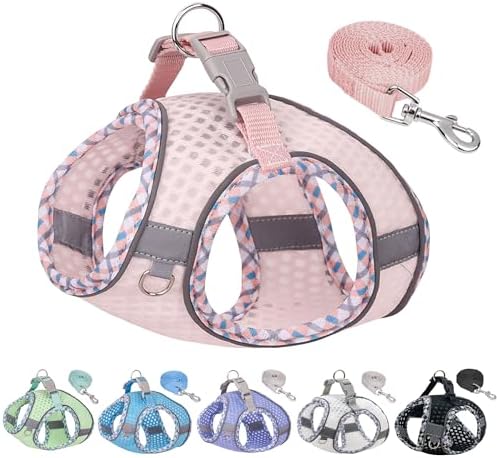 Summer Dog Harness and Leash Set, Soft Dog Vest Harness with Super Breathable Diamond Mesh, Reflective No-Pull Pet Harness for Outdoor Walking, Training for Small Dogs, Cats Pearl Pink XXS