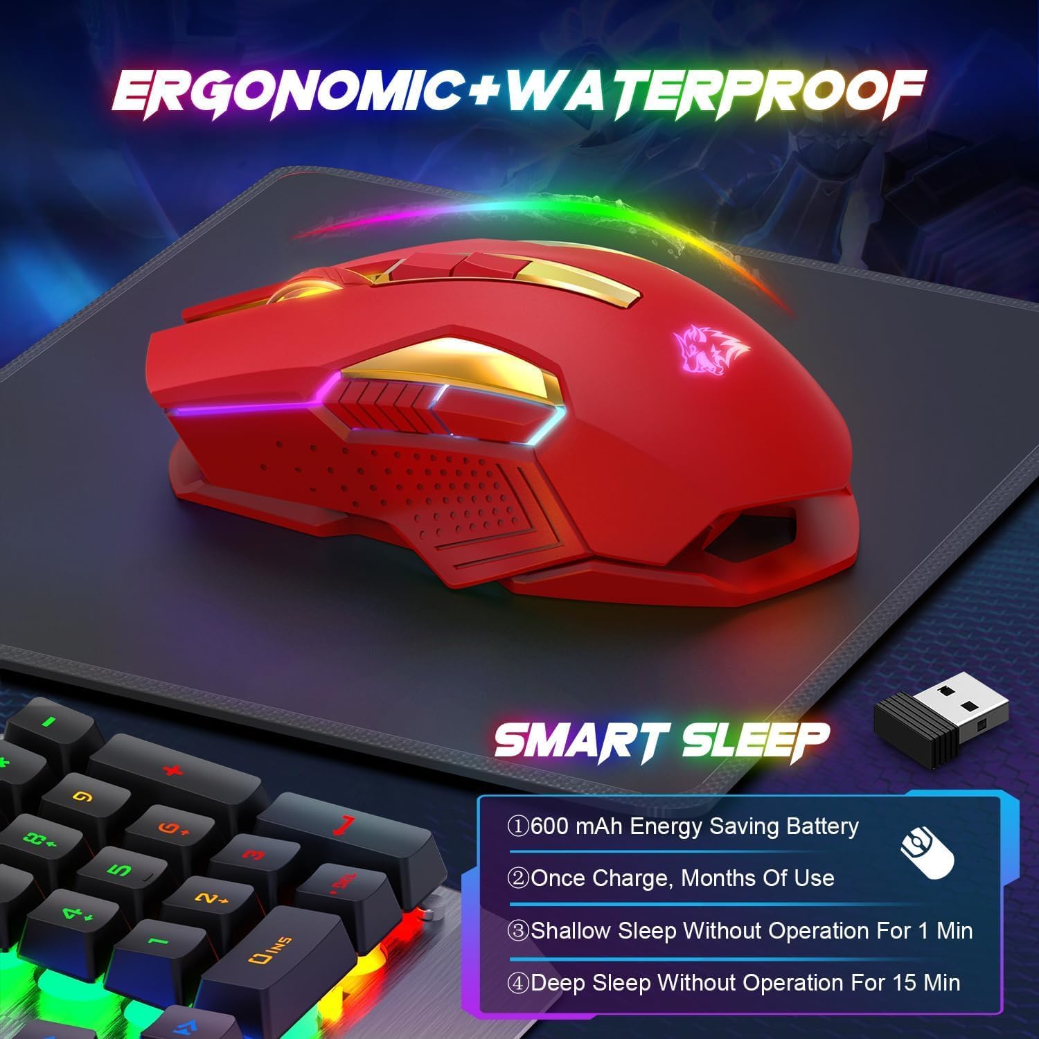 LexonElec Wireless Gaming Mouse,RGB Wireless Mouse with Silent Ergonomics Button,USB C Rechargeable 7 Colors Cool LED Light Up Computer Mice,3 Level Dpi for PC Gamer/Mauser/Laptop/Chromebook/Mac-Red