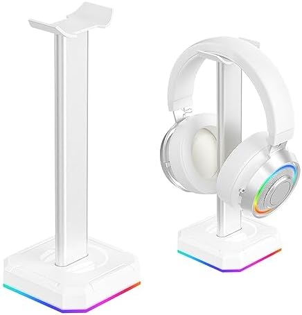 White Headphone Stand,Desk RGB Lights Headset Holder,Suitable for All Over-Ear Headphone (White, Only RGB Light)