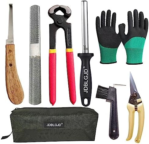 8 inch Farrier Hoof Tool Kit Farrier Tool Kit(8 Piece)Professional Hoof Knife Sharpener Horse Farrier Tools Farrier Hoof Nippers Mini goat hoof rasp file Pig Equine Metal Shear Cutter Handle Knife