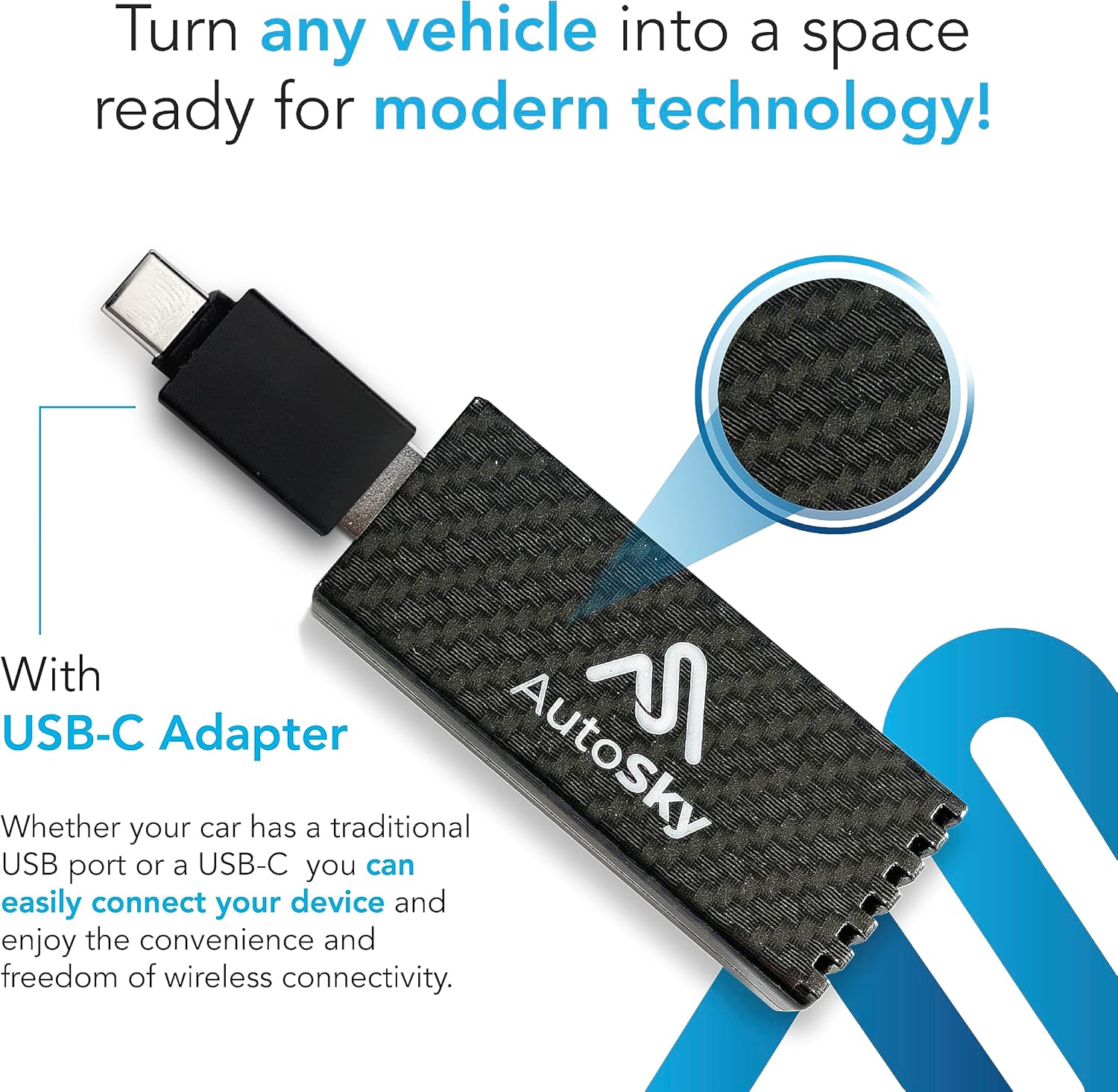 Adaptador CarPlay Inalámbrico AutoSky Wireless CarPlay Adapter 2023 Pro Edición Extra - Adaptador CarPlay Inalámbrico Rápido y Compacto para Coches con CarPlay Cableado de Fábrica – Extender USB-A - Adaptador USB-C – CarPlay Cableado Requerido