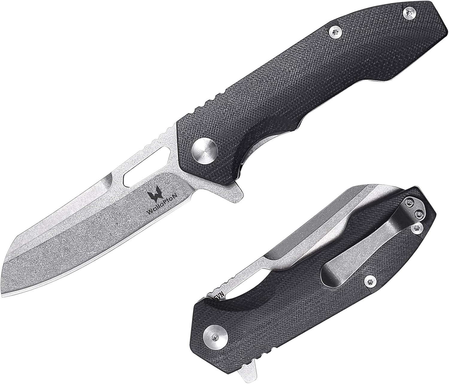 Camping Folding Knife - S35VN Powder Steel G10 Handle Comfortable Grip - Great for Cutting Hunting Hiking Survival, Father’s Day Gifts for Men Husband Dad. Include Sheath & Screwdriver