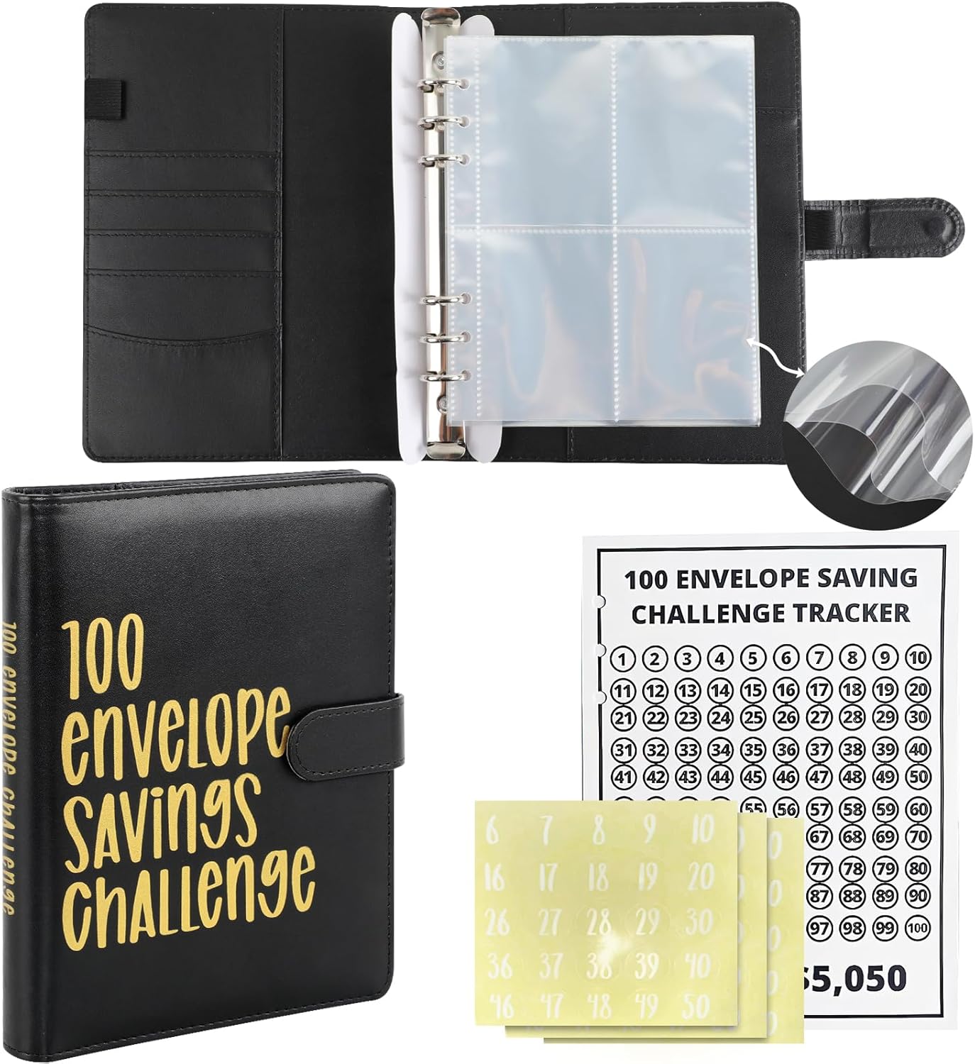 100 Envelope Challenge Binder, Budget Binder with Cash Envelopes, Cash Stuffing Envelopes Binder, Couples Challenge The Incident Notepad Together for Budgeting & Challenging to Save $5,050 (Black)