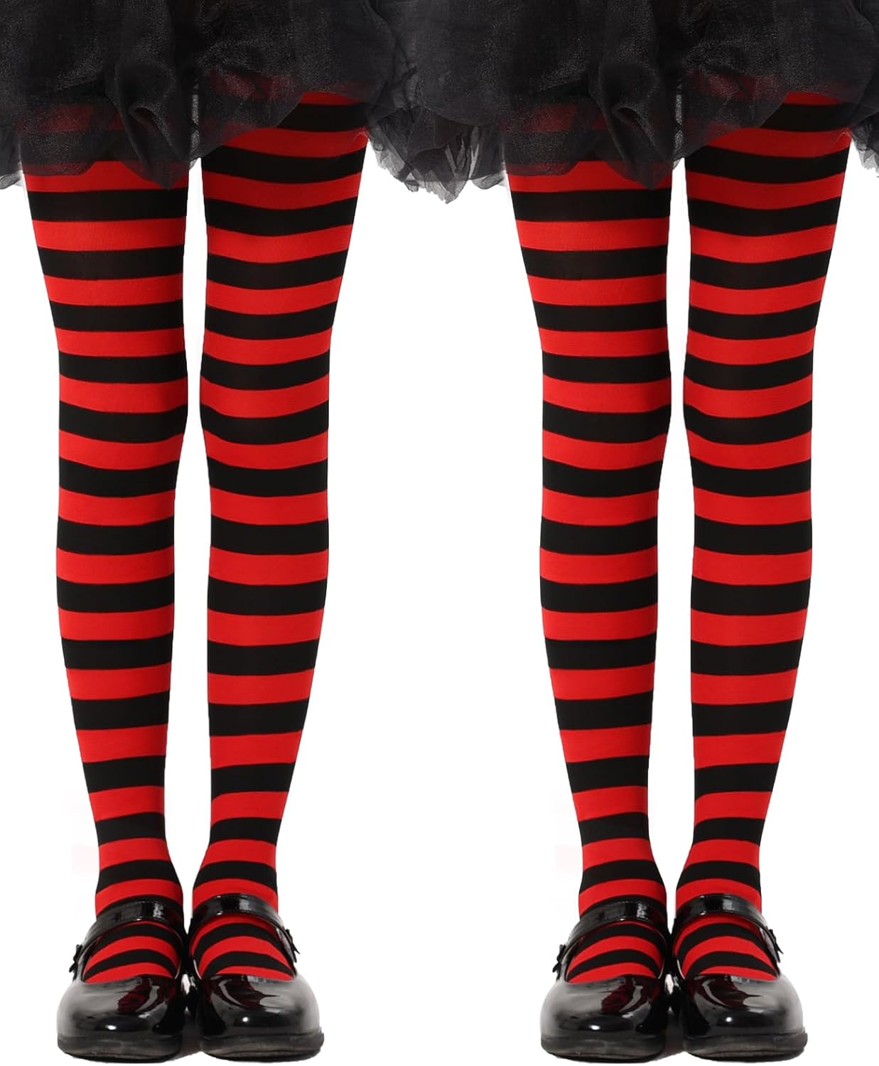MANZI Toddler Striped Tights Semi-Opaque Footed Girls Tights Pack of 2