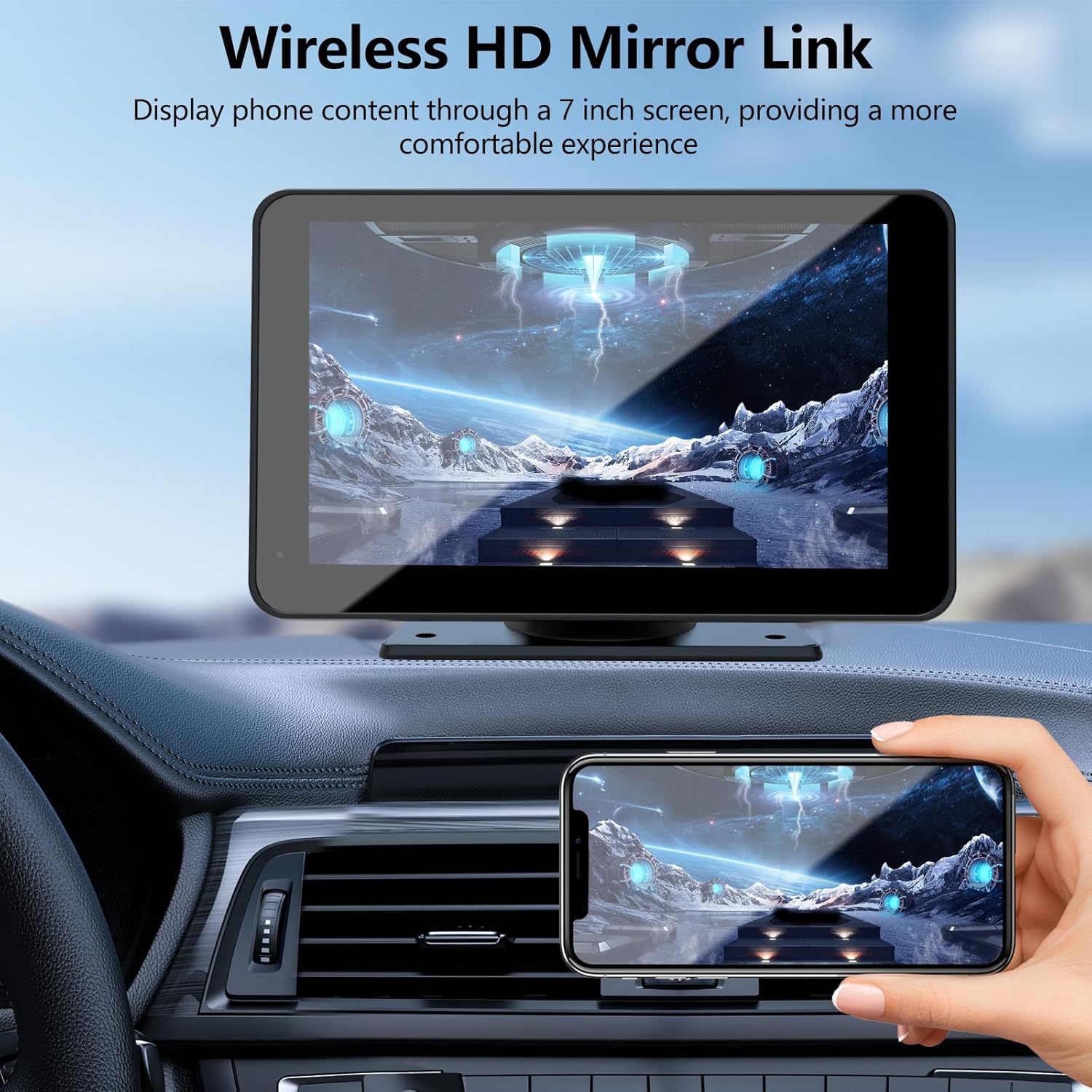 Portable Wireless with Apple CarPlay and Android Auto Screen for Car, 7" HD Touch Screen Car Stereo with Mirror Link, Bluetooth 5.2, Backup Camera, AUX,FM Transmitter for All Vehicle