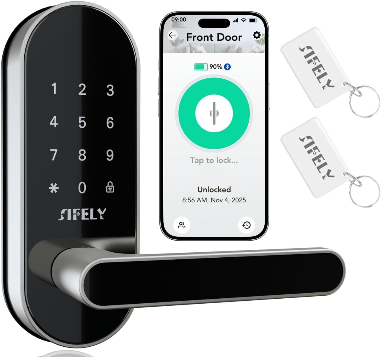 Keyless Entry Keypad Smart Door Lock with Handle & Knob – Digital Deadbolt for Front, Bedroom, Office & Interior Doors, App Control for Airbnb, Guests & Kids, Easy DIY Install (No Fingerprint)