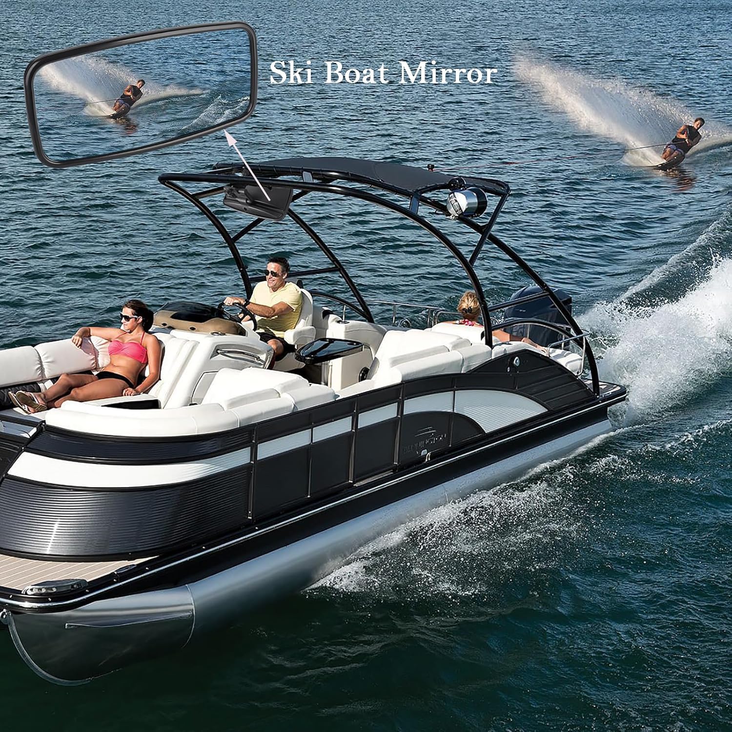 Boat Mirror, 13x6 Inch Boat Rear View Mirror with 360 Rotation for Ski & Pontoon Boat Safety