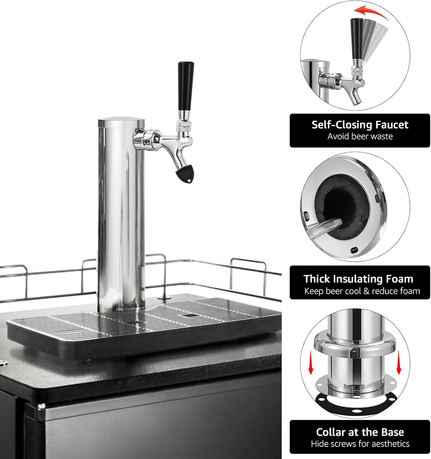 Single Beer Tap Tower Draft Beer Tower Kegerator Tower Stainless Steel Keg Tower Kegerator Parts Kegerator Kit Stainless Core Beer Faucet Pre-assembled Beer Line 3" Beer Tower Dispenser