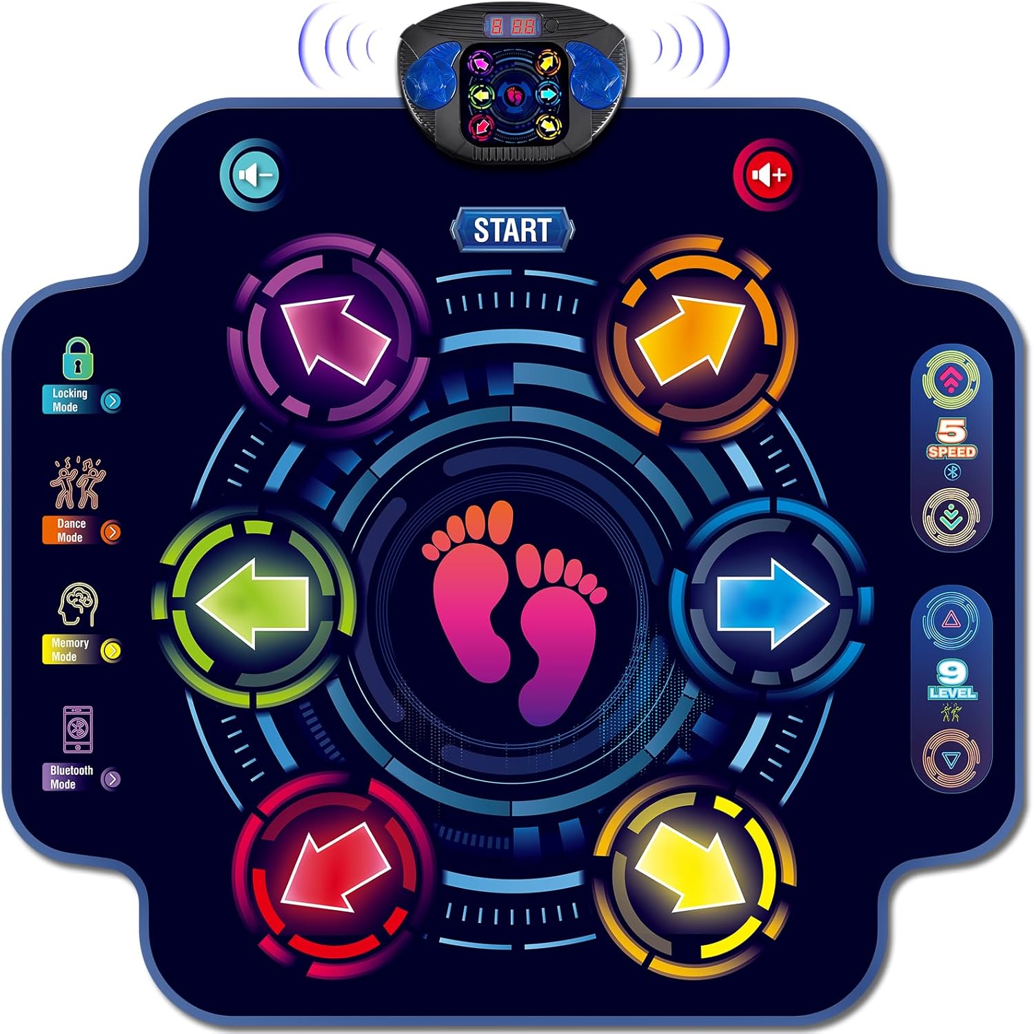 【2025 Upgraded Bluetooth Function & 5 speed Levels &Memory Function】-- Unique Bluetooth mode with adjustable speed is now coming! The dancing mat is easy to connect with Bluetooth to play your favorite music so that kids can invite friends to join in the dance.Wireless Bluetooth dance pad has 5 speeds - helping you to choose more fun while experiencing dance activities. Memory mode exercises the brain and improves your child's memory in a fun way.