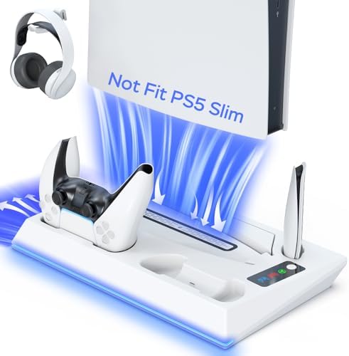 PS5 Stand with Cooling Station and Charger Station - 3-Level Silent Fan for PlayStation 5 Accessories, Controller Charger Station
