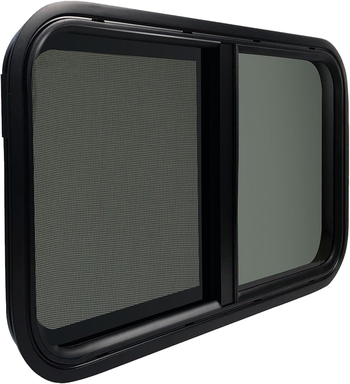 Black rv window with tinted glass blocks the harmful UV rays and to make sure the sun doesn't heat up your RV interior. The windows exposed mesh screen will allow fresfh air to flow freely