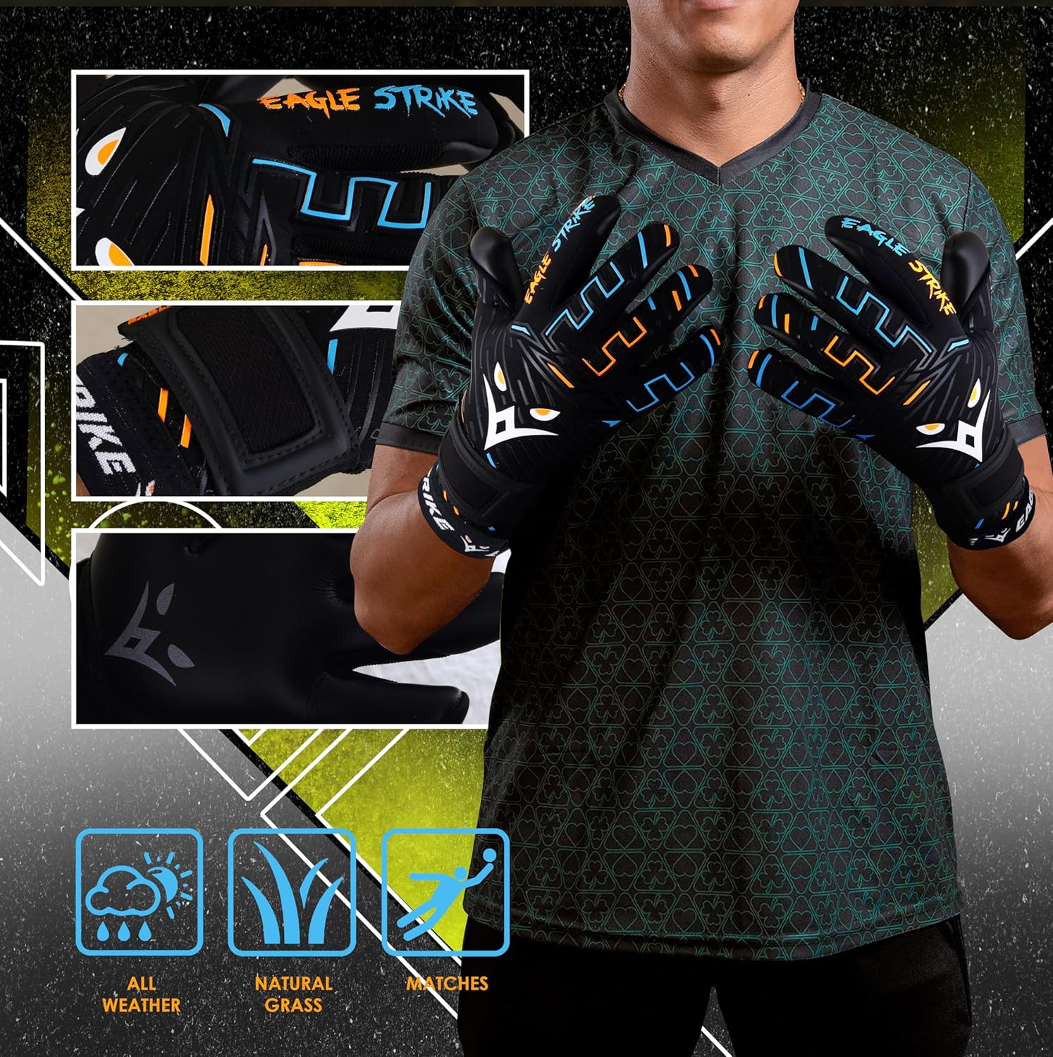 EAGLE STRIKE Goalkeeper Goalie Gloves with Wrist Support | Football Goal Keeper Gloves for Adults, Youth, and Junior for Professional Football Training