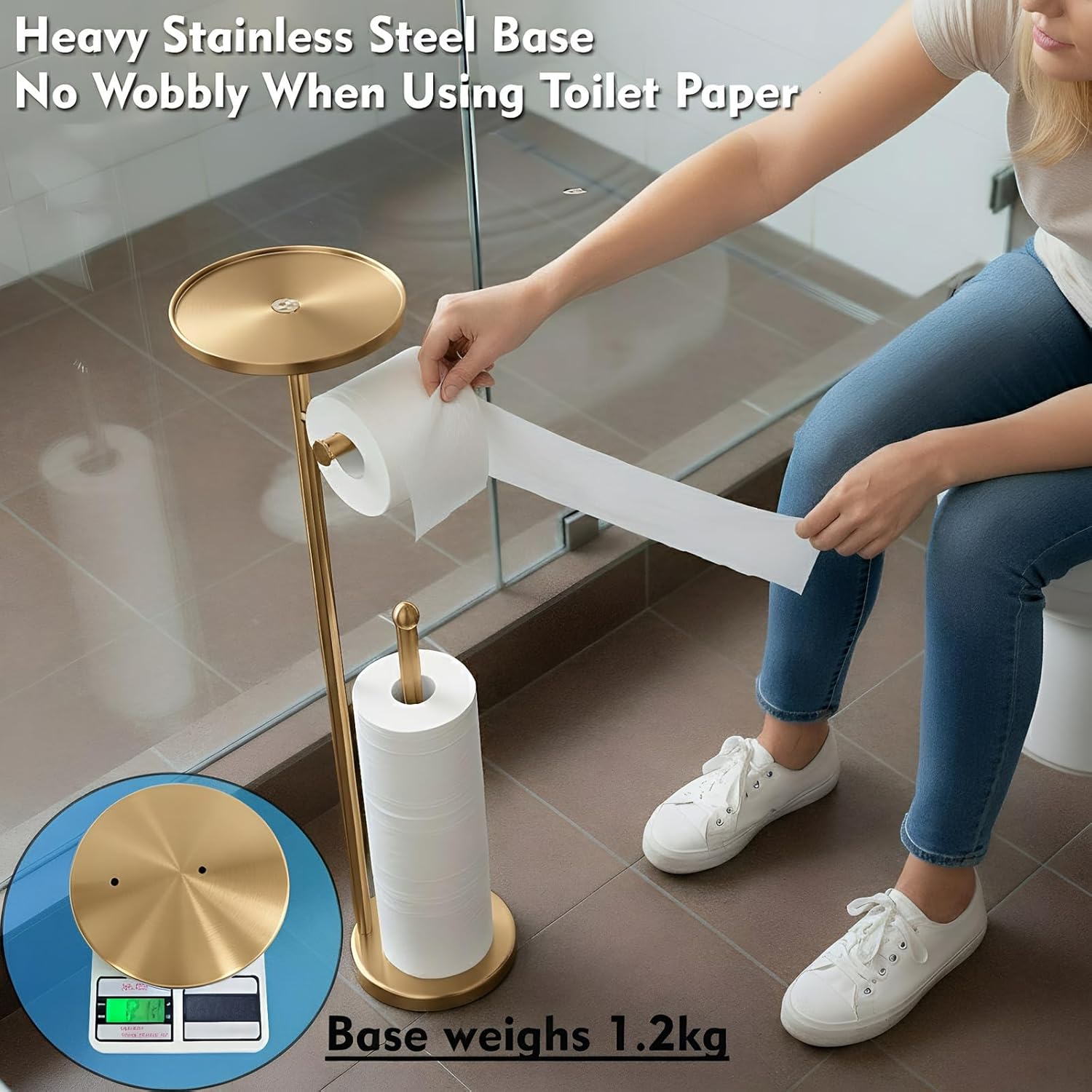 Constructed of stainless steel ensuring durability and dependability. The freestanding toilet paper holder will resist rust and corrosion through everyday use while maintaining aesthetic appeal. With an elegant brushed gold finish, this toilet paper holder stand is a classy addition to any bathroom décor.