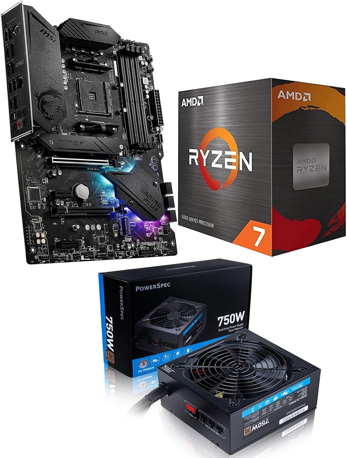 INLAND Micro Center AMD Ryzen 7 5700X Desktop Processor Bundle with MSI MPG B550 Gaming Plus ATX Motherboard and PowerSpec 750W Power Supply Semi Modular 80 Plus Bronze Certified