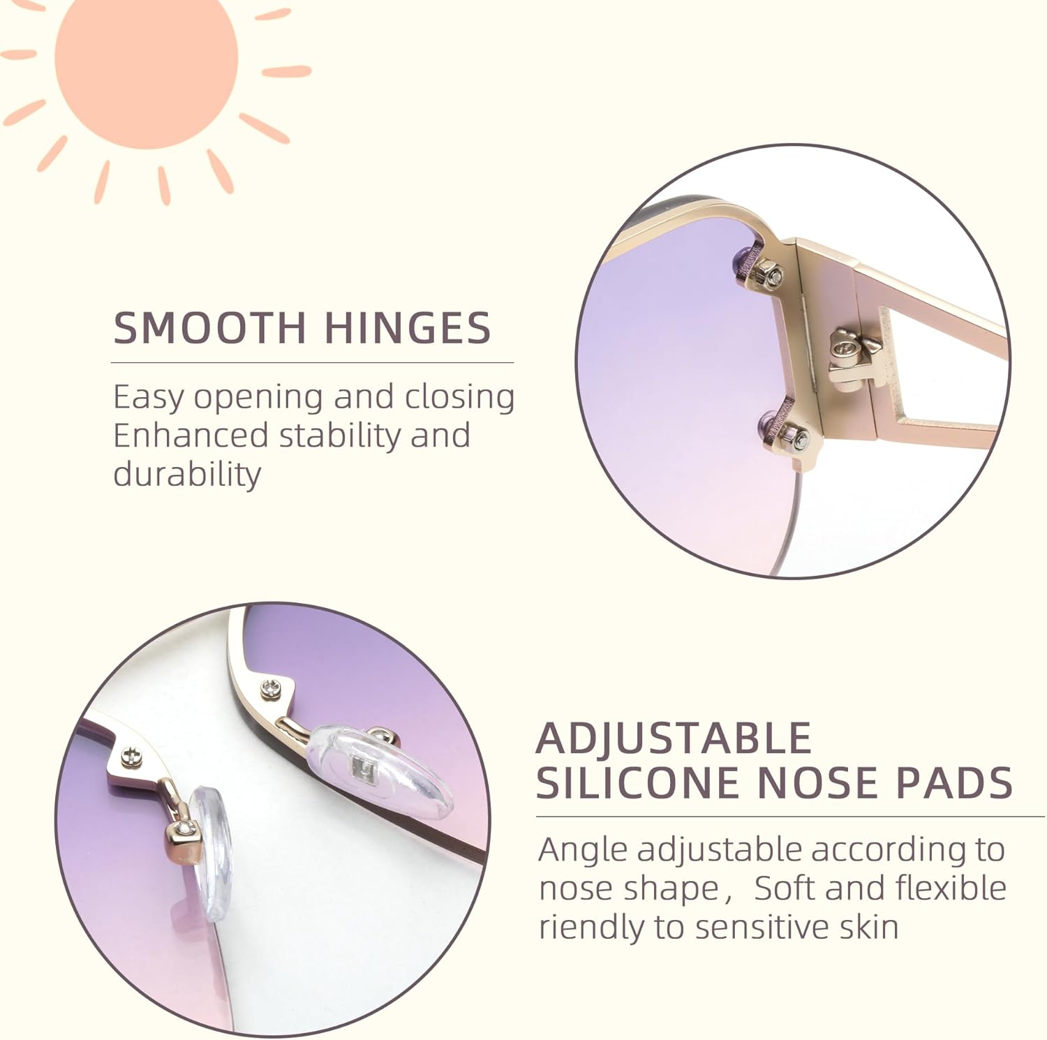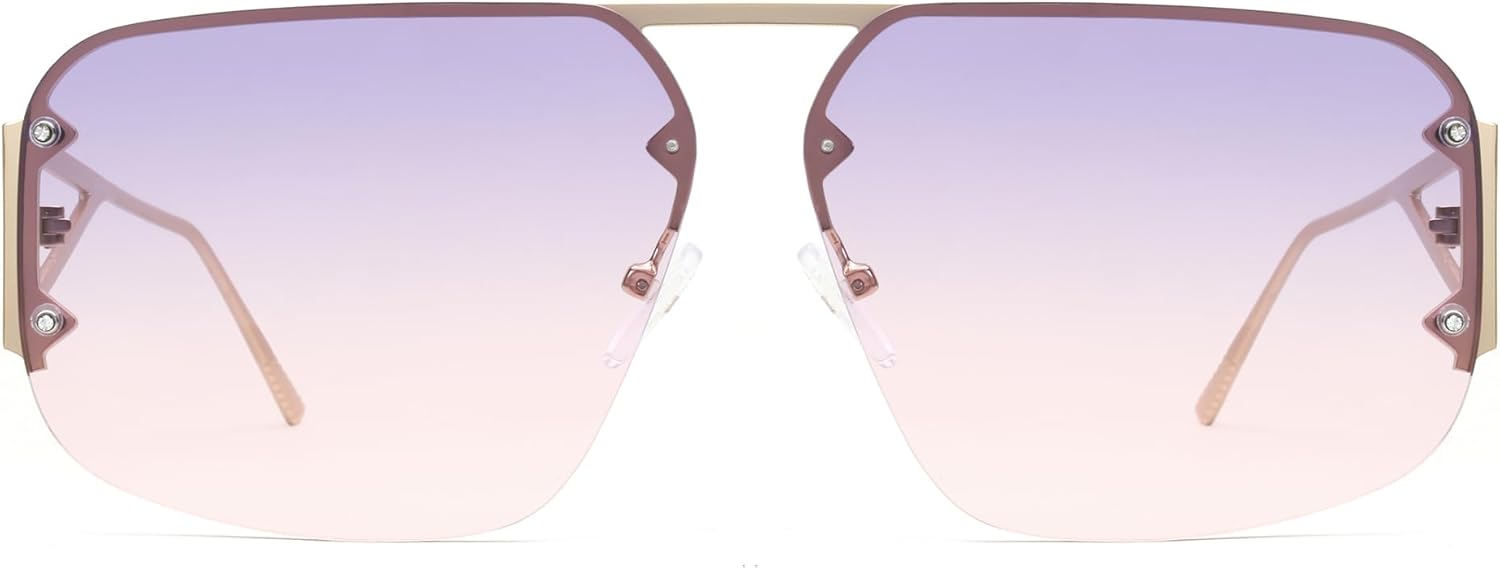 JOO'RTI Designer Aviator Rimless Sunglasses Mens Womens Oversized Trendy Metal Frame Shades Lentes De Sol Para Mujer