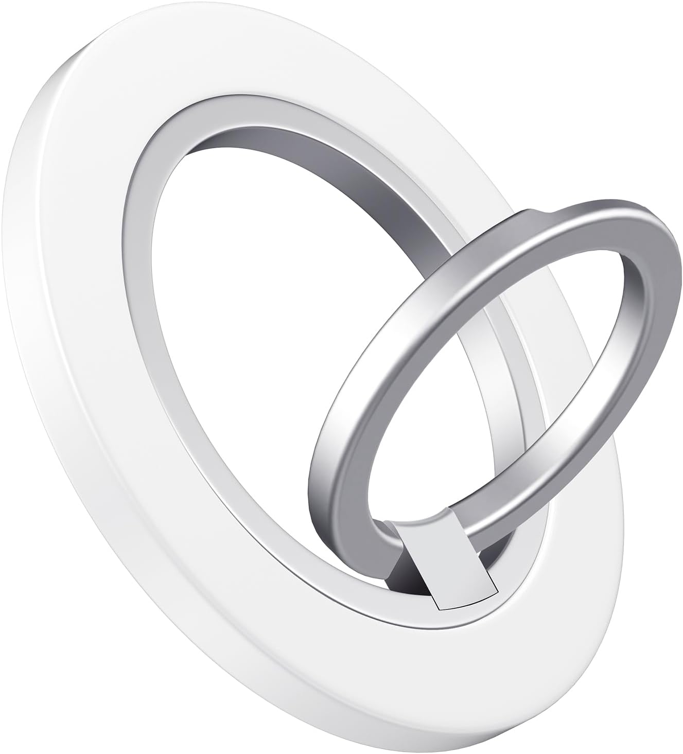 Anuck Magnetic Phone Ring Holder for MagSafe, Strong Magnet Phone Grip Stand Holder Anti-scratch Adjustable Kickstand for iPhone 15 14 13 12, Pro, Pro Max, Mini, Plus, for Mag Safe Cases, White/Silver