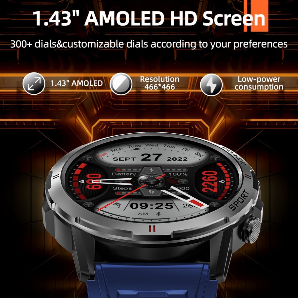 Explorer Smart Watch for Men Women, 1.43" AMOLED Screen Bluetooth Call Smartwatch IP68 Waterproof Tactical Sport Watches with 100+ Sports Mode Heart Rate Sleep Monitor for Android iOS