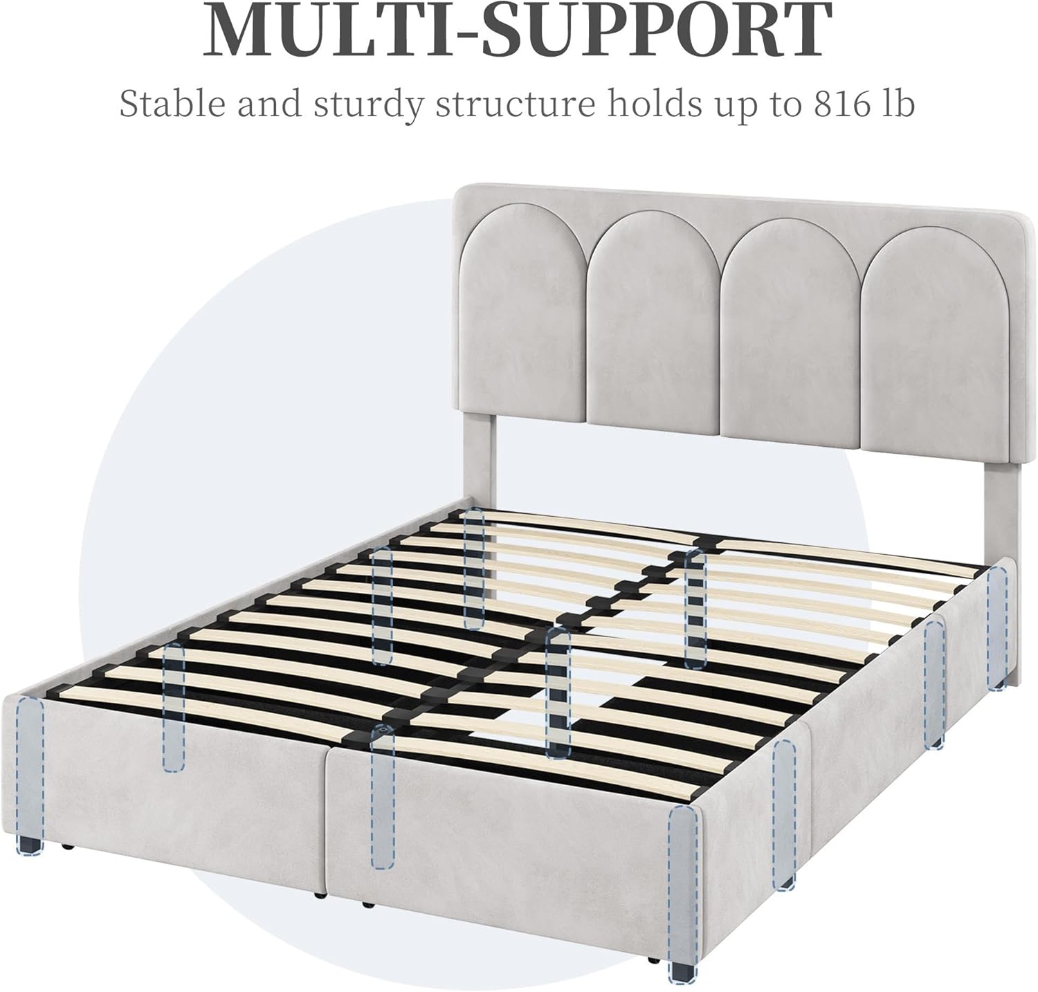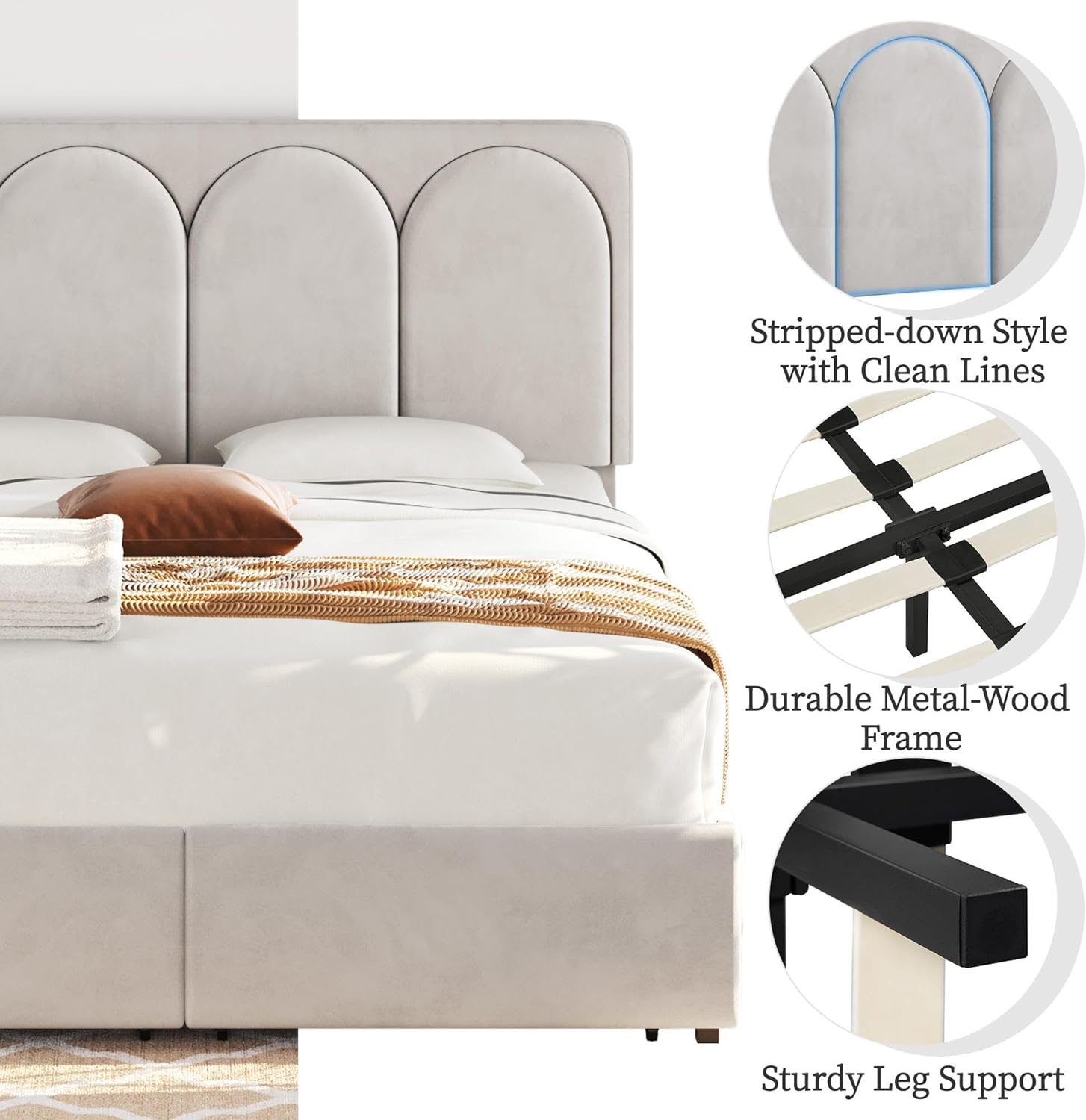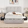 Yaheetech Queen Bed Frame Upholstered Platform Bed with 4 Drawers Storage and Adjustable Headboard,Arch Channel Tufted Headboard,Sturdy Wood Slat Support,No Box Spring Needed,Beige Queen Bed