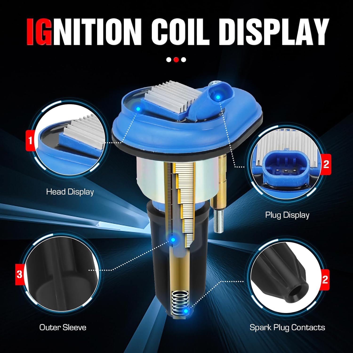【Premium Quality】The ignition coil is made of high-quality materials, which enhances the heat resistance, wear resistance, and corrosion resistance of the coil and extends its service life. High efficiency and fast ignition