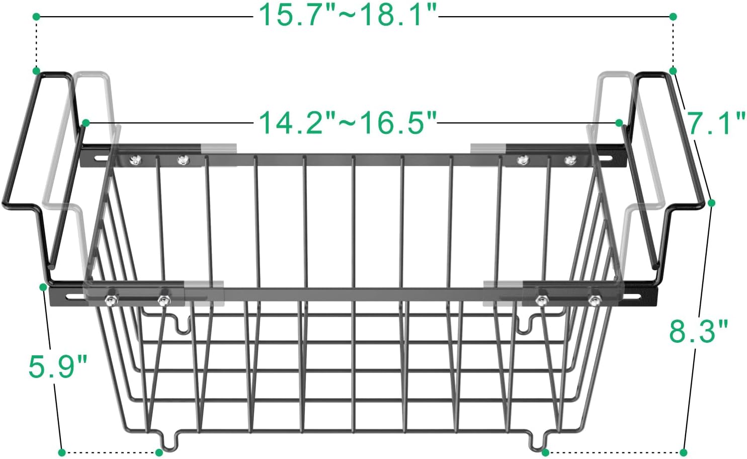[15.8" to 18.1" Extendable Length Fit 7 Cu.Ft Chest Freezer] Please note: This product contains only 2 hanging baskets. The hanging handles are extendable from 15.8" to 18.1" to perfectly fit 7 cu.ft chest freezers' width; the whole size of the hanging chest freezer organizer bins is 15.8" to 18.8"(L)*8.7"(W)*7.1"(H), choose different sets of deep freezer organizer bins according to your actual needs