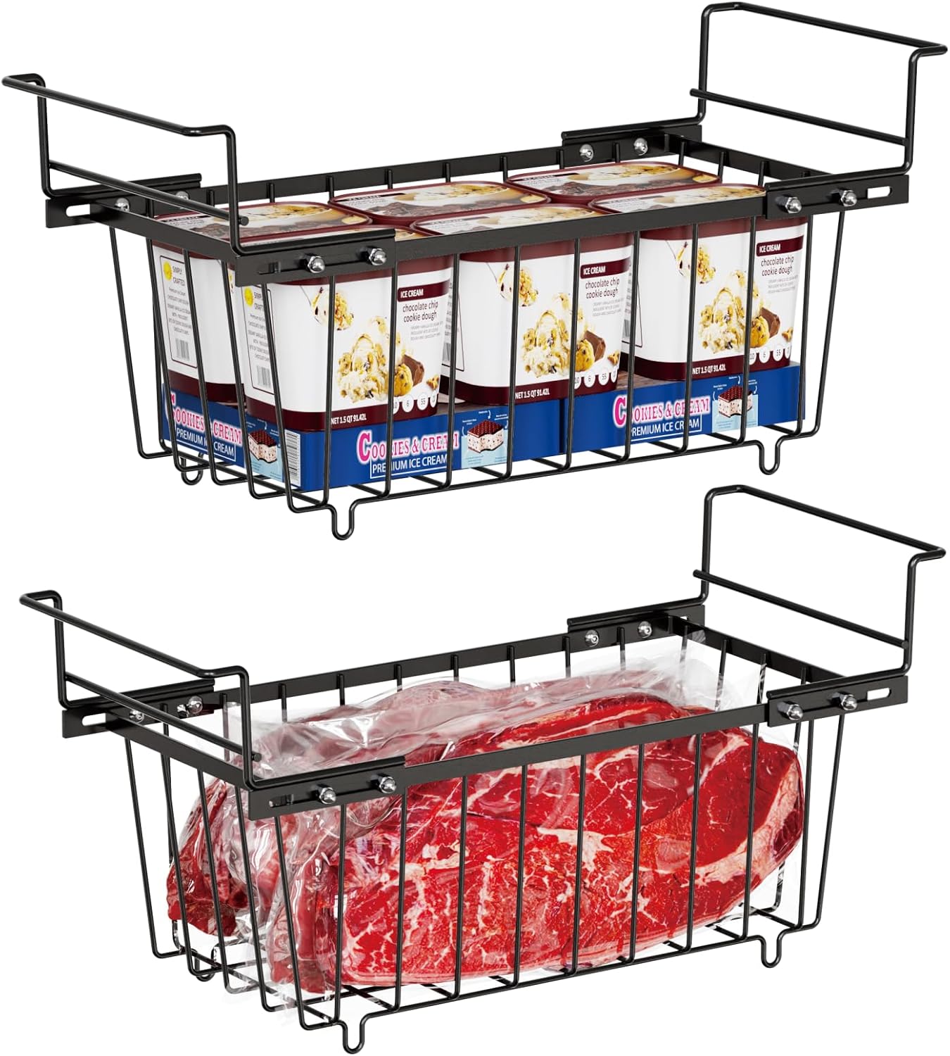 [Faster Freeze for Better Freshness] Compared with the traditional four-sided closed plastic box, this chest freezer storage basket container is made of open frames, lets air circulate for efficient freezing, and the food can be frozen faster, better preserving the freshness of food
