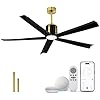 60 Inch Smart Ceiling Fan with Light, Ceiling Fans with Voice Control, Black and Gold Ceiling Fans with Lights and Remote Control Indoor, CF02-BGB