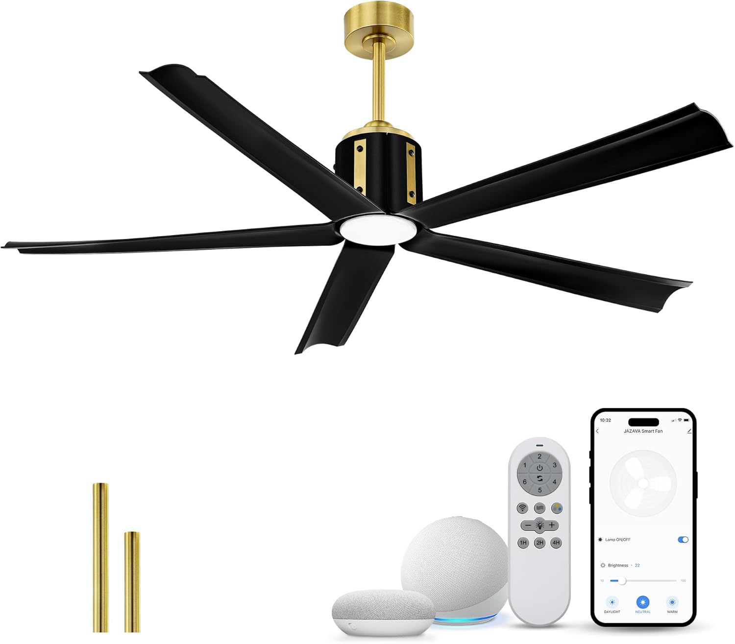 【Smart Control Fans】The Jazava Smart Large 60-inch modern ceiling fan with light offers various control options, including Remote Control, the Smart TUYA App (compatible with 2.4GHz WIFI), and Voice Control, making it suitable for both residential and commercial settings.