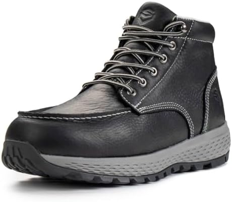 SUREWAY Men's Lightweight Casual Wedge Soft Moc Toe Work Boots,Comfort Insole, Superior Oil/Slip Resistant,Men's Construction Industrial Safety Working Boots/Shoes - Black