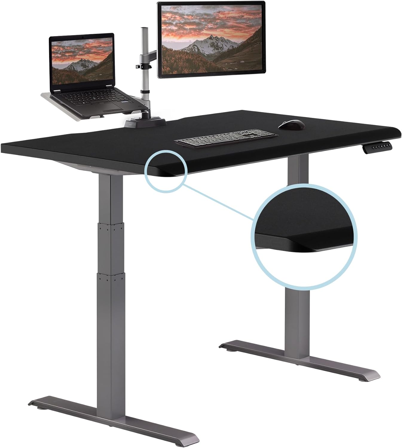 Dual Motor Height Range: Quiet electric lift system adjusts from 25 inch to 50.5 inch with smooth transitions, includes 4 programmable presets, spacious 48 inch by 30 inch surface fits a monitor and a laptop.